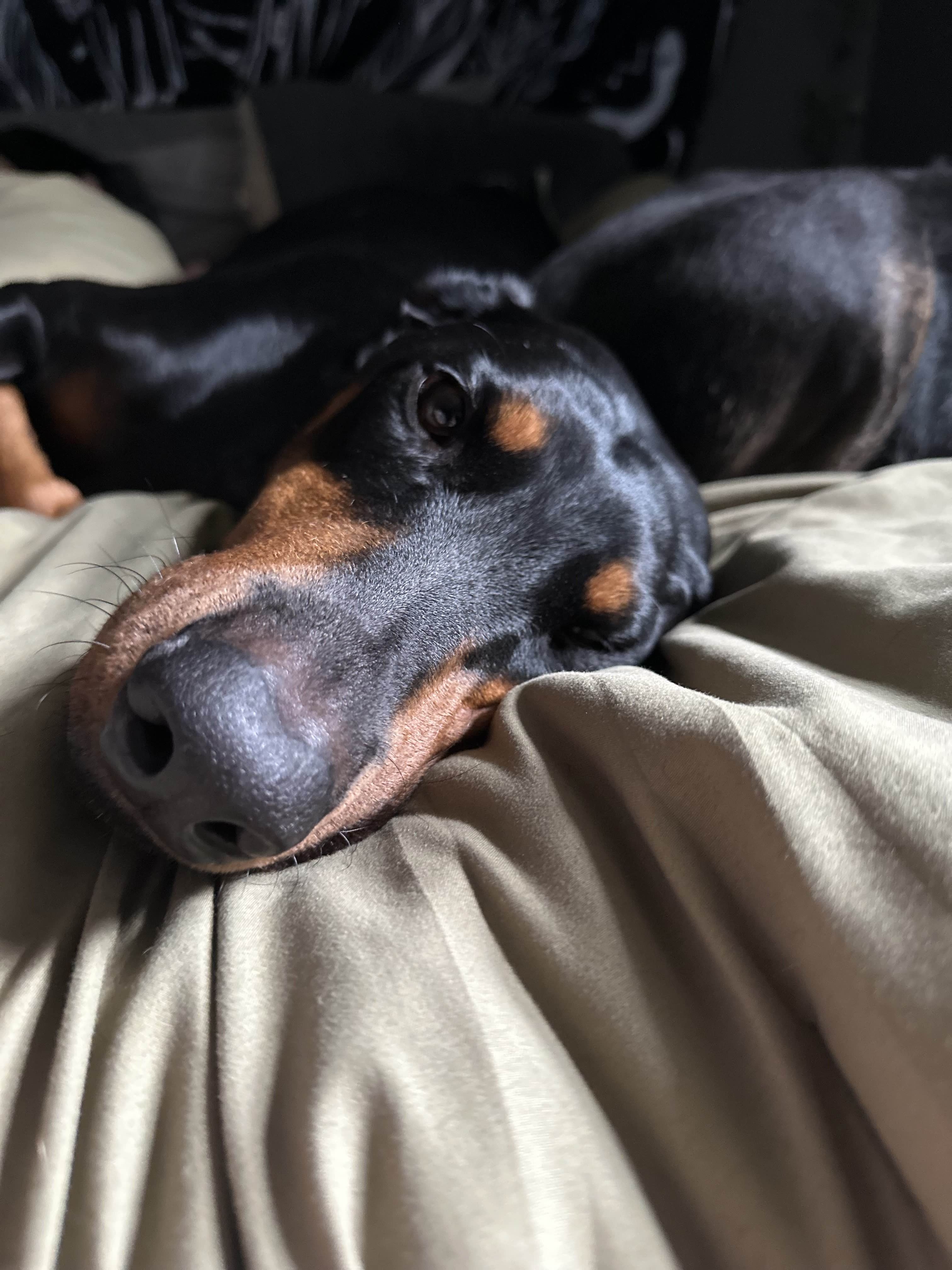 On August 16th, my 4-year-old Doberman suddenly became very ill. She lost her appetite, began vomiting, became dehydrated, and had little to no bowel movements. After speaking with a vet tech twice at All Paws & Claws of Angola, Indiana and monitoring her closely, we strongly suspect she has an intestinal blockage — possibly from something as small and seemingly harmless as a sock. She did end up throwing up a sock 3 days after her initial vet visit but her symptoms of a blockage persisted.