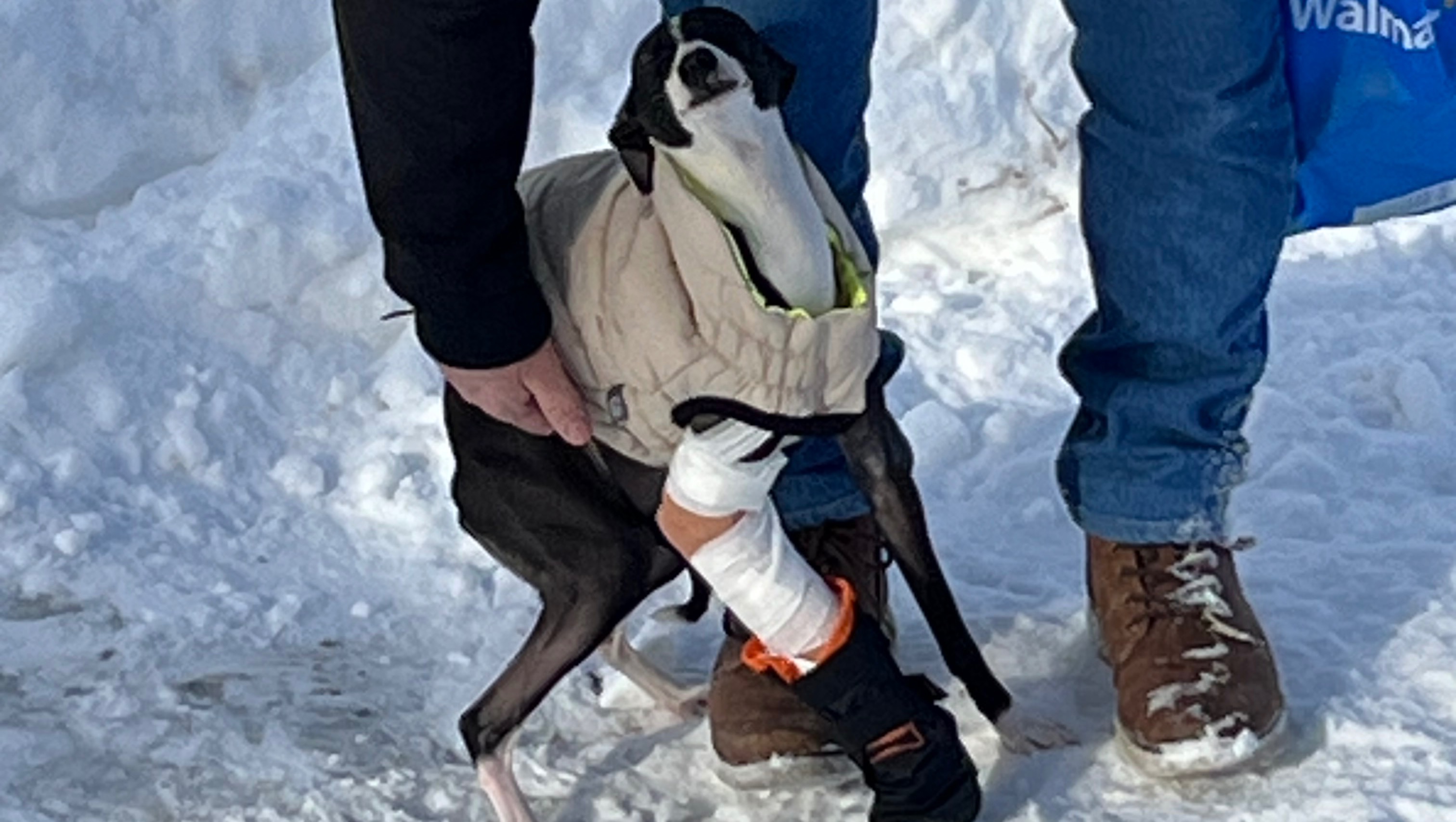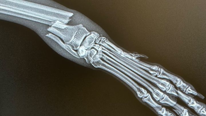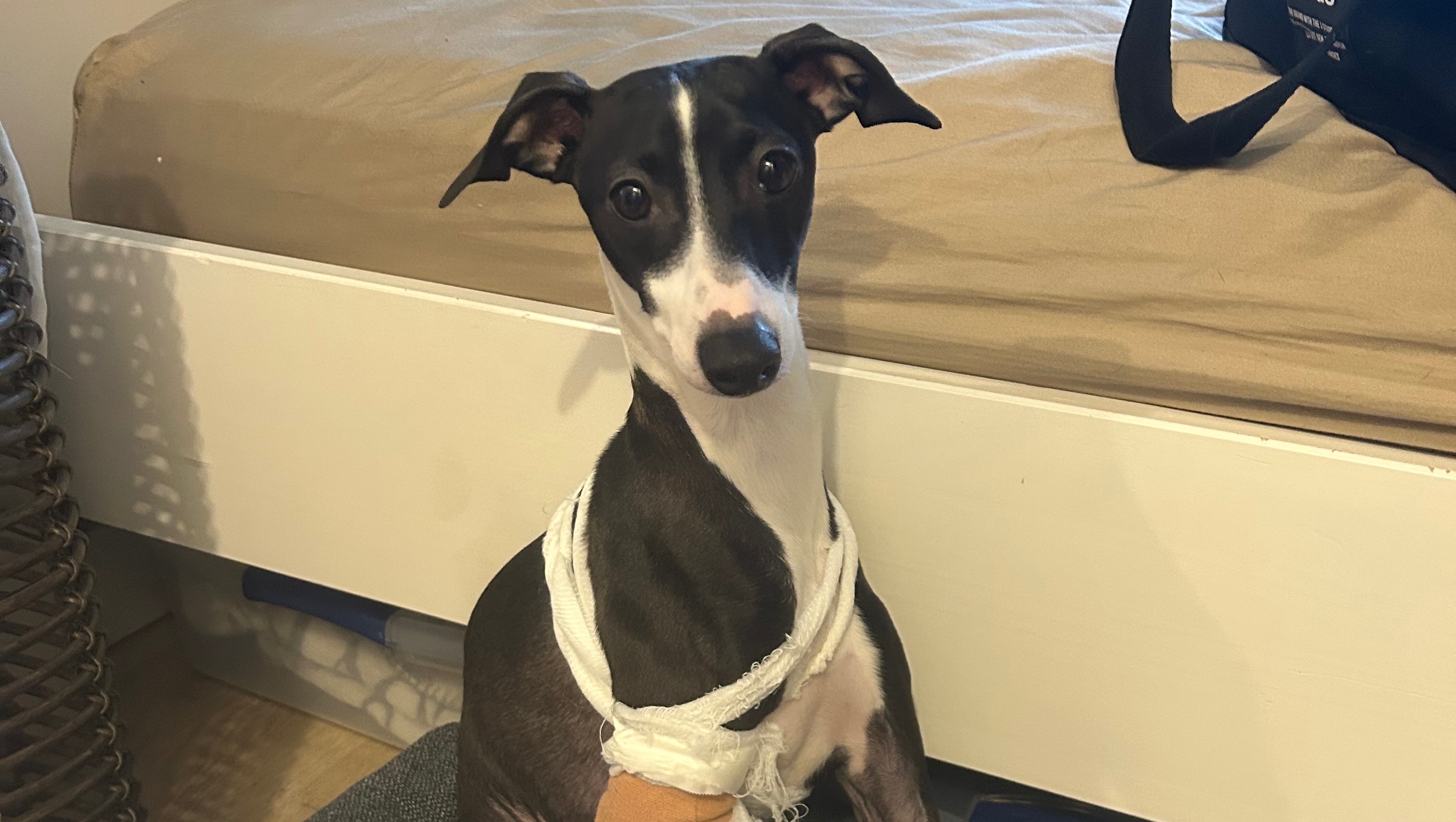 Hi, I’m Sabrina a Vet technician. We rescued a little Greyhound of 1 year old at my job. He jumped from a high place at his house, his paw is broken but the owners couldn’t pay 5000$.