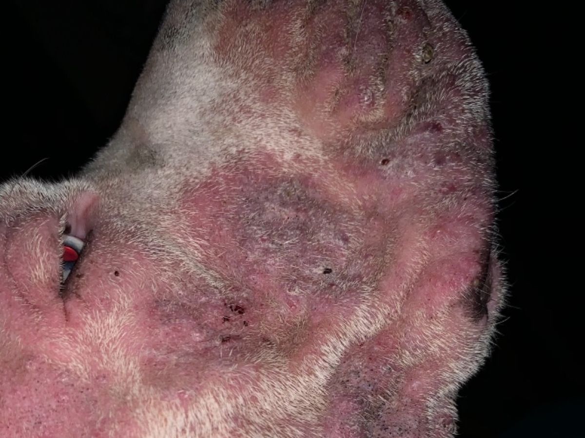 Oden was recently rescued from an abusive owner he was addicted to meth and smoked around the dog and lived in a car . He has some sort of skin condition and a fatty cyst type lump in his neck anything helps ! I recently lost my job and can’t afford to help him he’s my best friend!