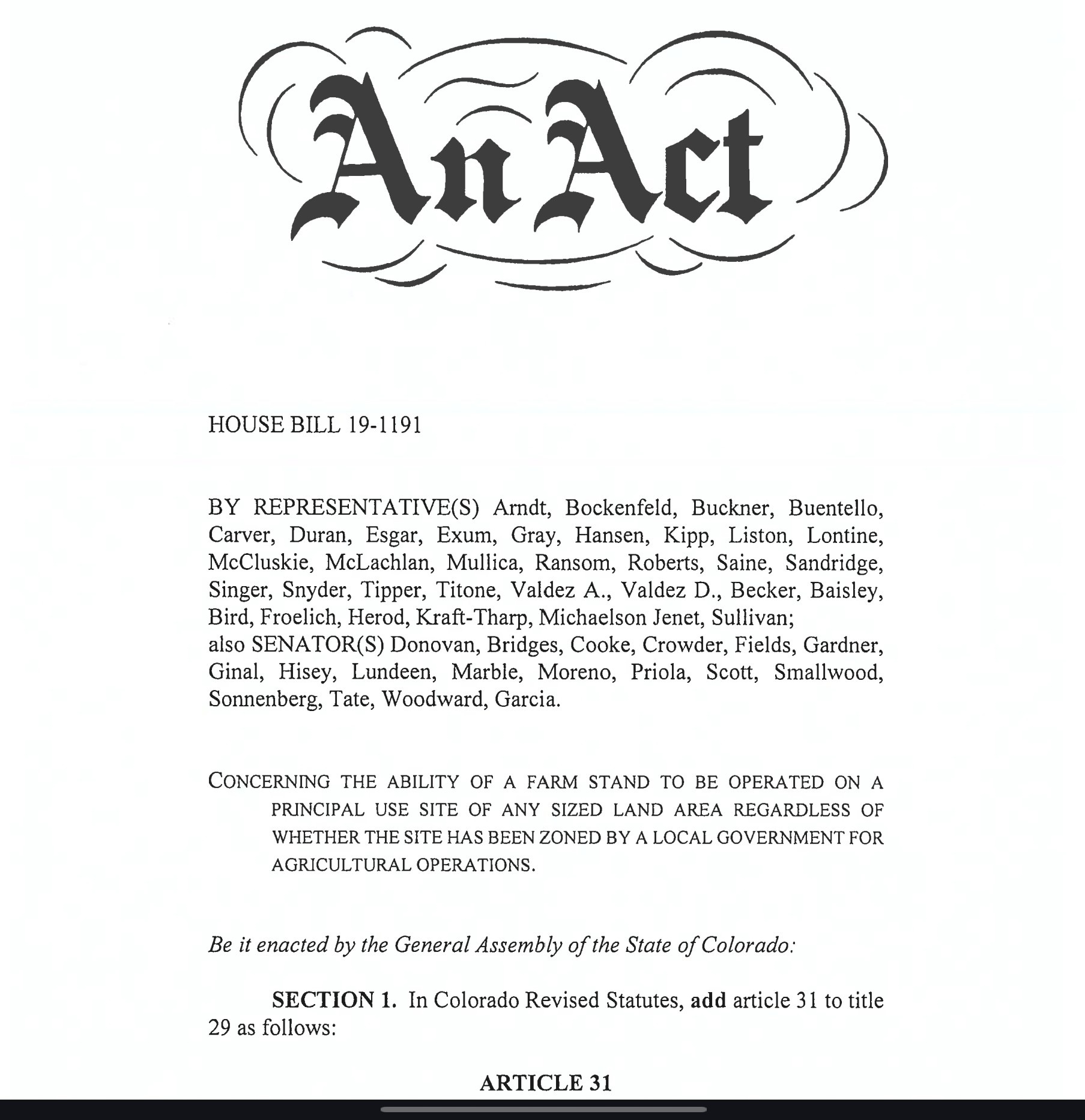- Pushing for Regulatory Updates: Funds will also support advocacy to update Teller County's land use regulations to align with state law under the Farm Stand Act (HB19-1191) and CRS 30-28-205.