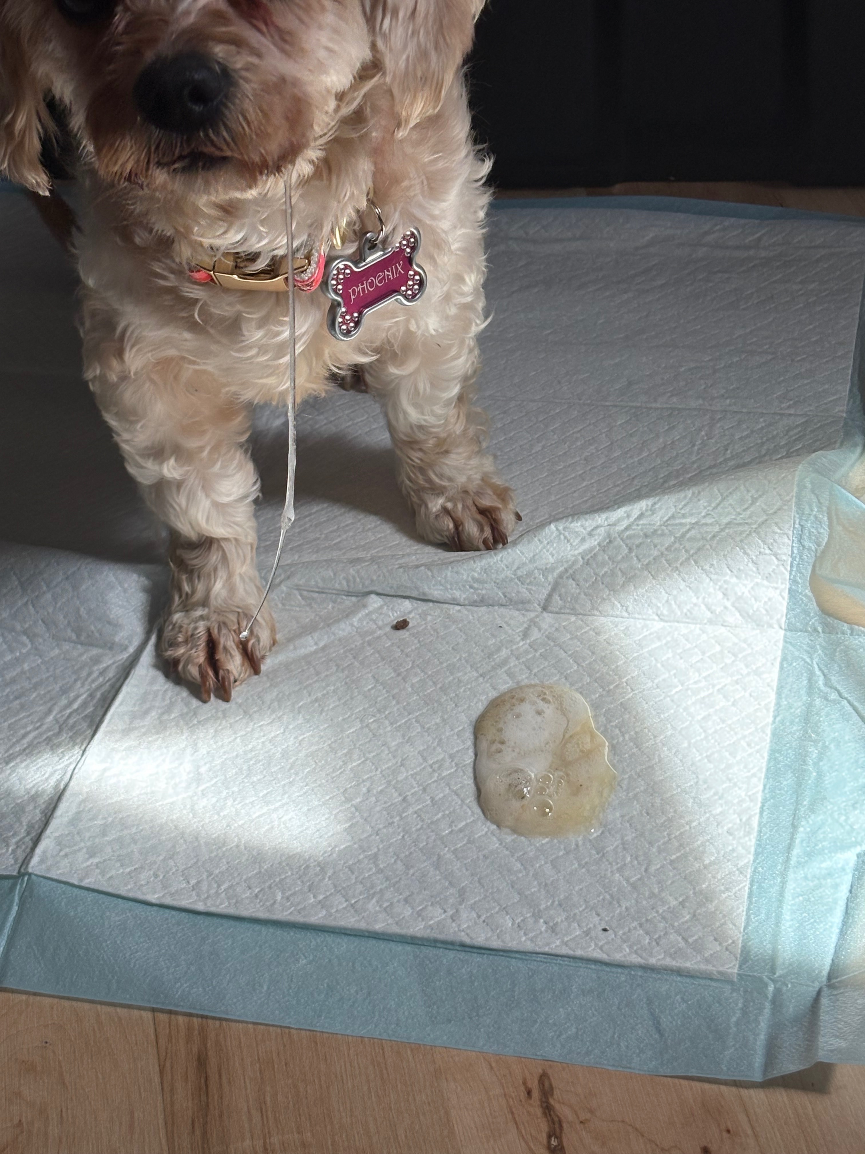 Phoenix can’t keep any food down. She vomits almost immediately after eating and barely drinks any water. When she does, it’s only a few licks at a time. After trying to eat, she becomes extremely tired and sick-looking. It’s heartbreaking to watch.