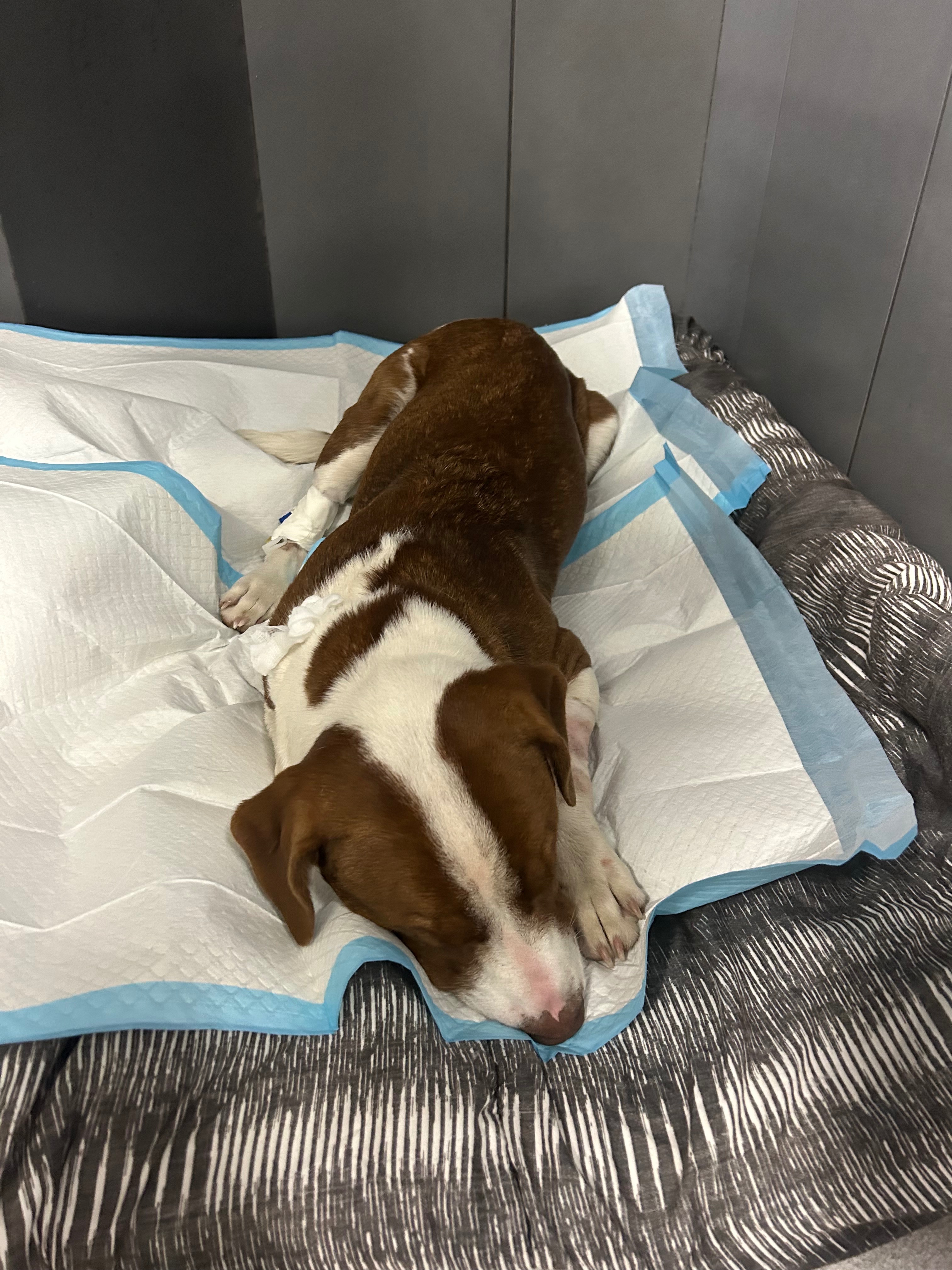 Our family has experienced unimaginable loss. My brother and his girlfriend tragically passed away in a fire at my parents’ house, along with three of their beloved pets. Rusty, their only surviving dog, was pulled from the house and immediately required immense oxygen support. The next day, Rusty began to suffer from severe seizures, likely due to smoke inhalation and lack of oxygen. He is also at risk of losing his sight from painful corneal ulcers.