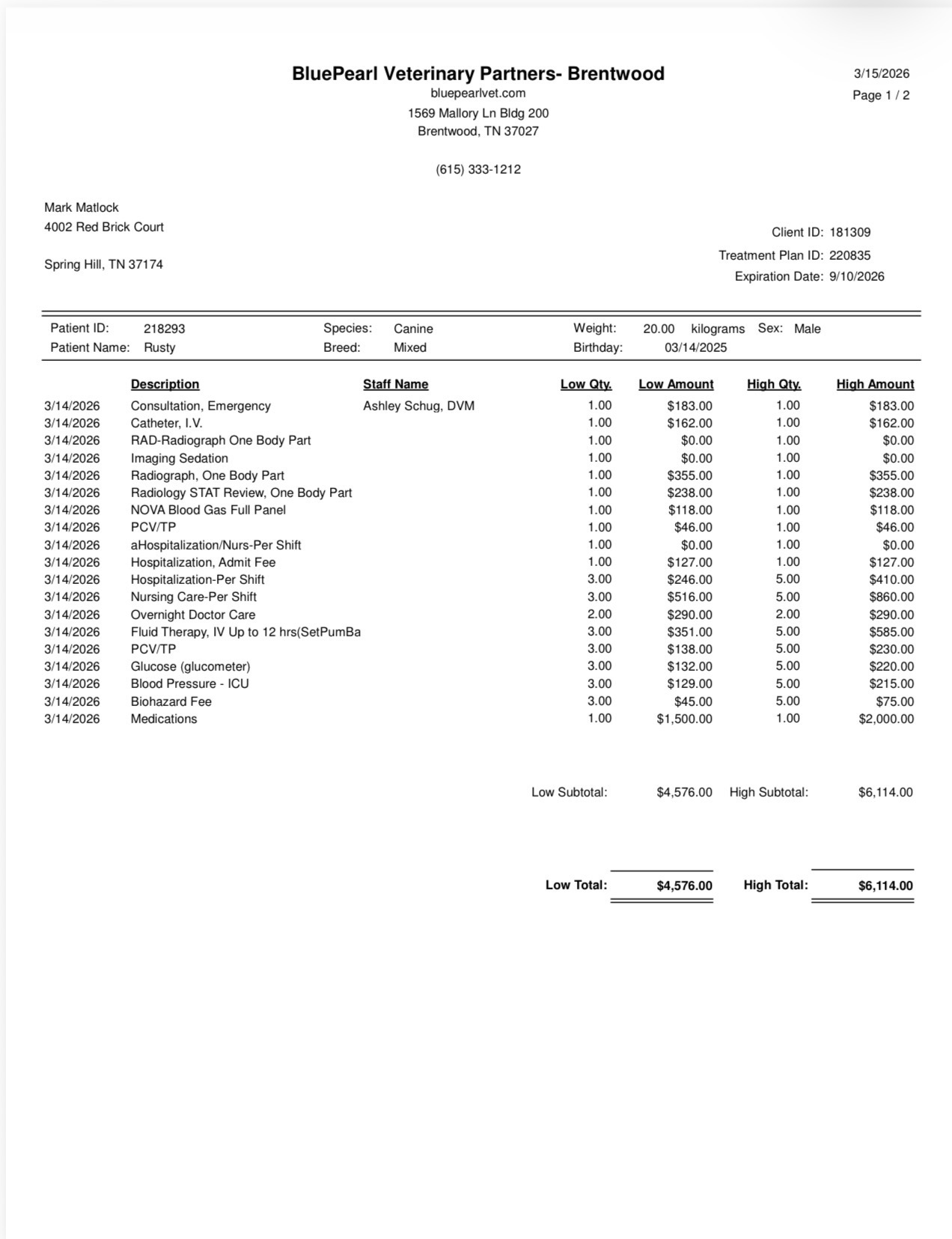 The emergency vet bill for Rusty’s care covers the oxygen, seizure treatment, and ongoing care he desperately needs. Saving Rusty feels like we are preserving a piece of my brother and Mary, and we are doing everything we can to help him recover.