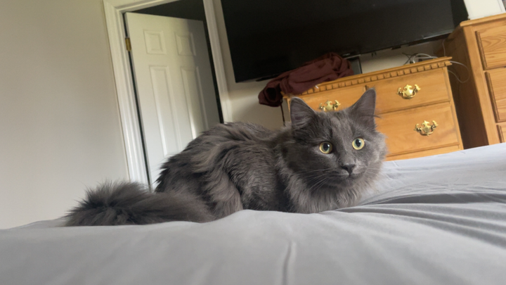 Scooter is my one and a half year old cat, and he’s truly the heart of our home. He’s a playful, chirpy, fluffy boy who loves springing into the air for his fish on a stick and chasing feet under the blanket. When he’s not playing, he sits in the window, watching birds and leaves fall, always curious and full of life. His joyful energy brings so much happiness to our family every single day.