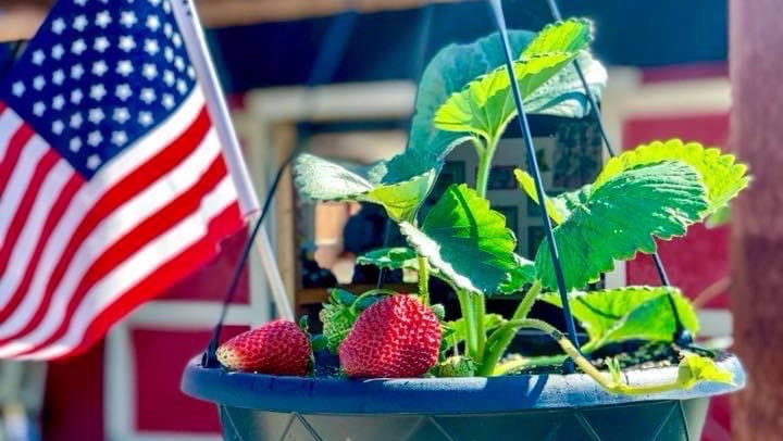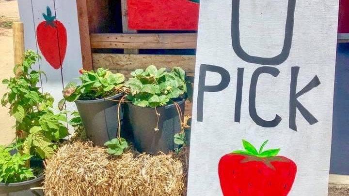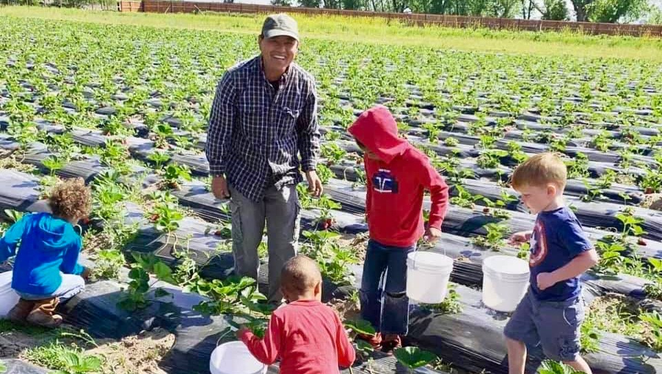 (Dad with some first time Strawberry pickers)