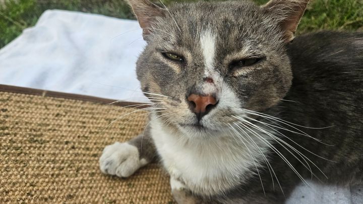 A very sweet cat was abandoned and neglected by a neighbor and needs help, and we are desperate to facilitate this. The weather and predators have been beating him up, and he needs help urgently.