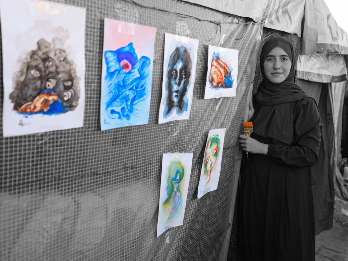 I used to live in the Jabalia refugee camp in northern Gaza before the October 7th war in a warm house with my small family. My dream and ambition were to study architecture and continue my journey in the world of art, but this war destroyed everything.
