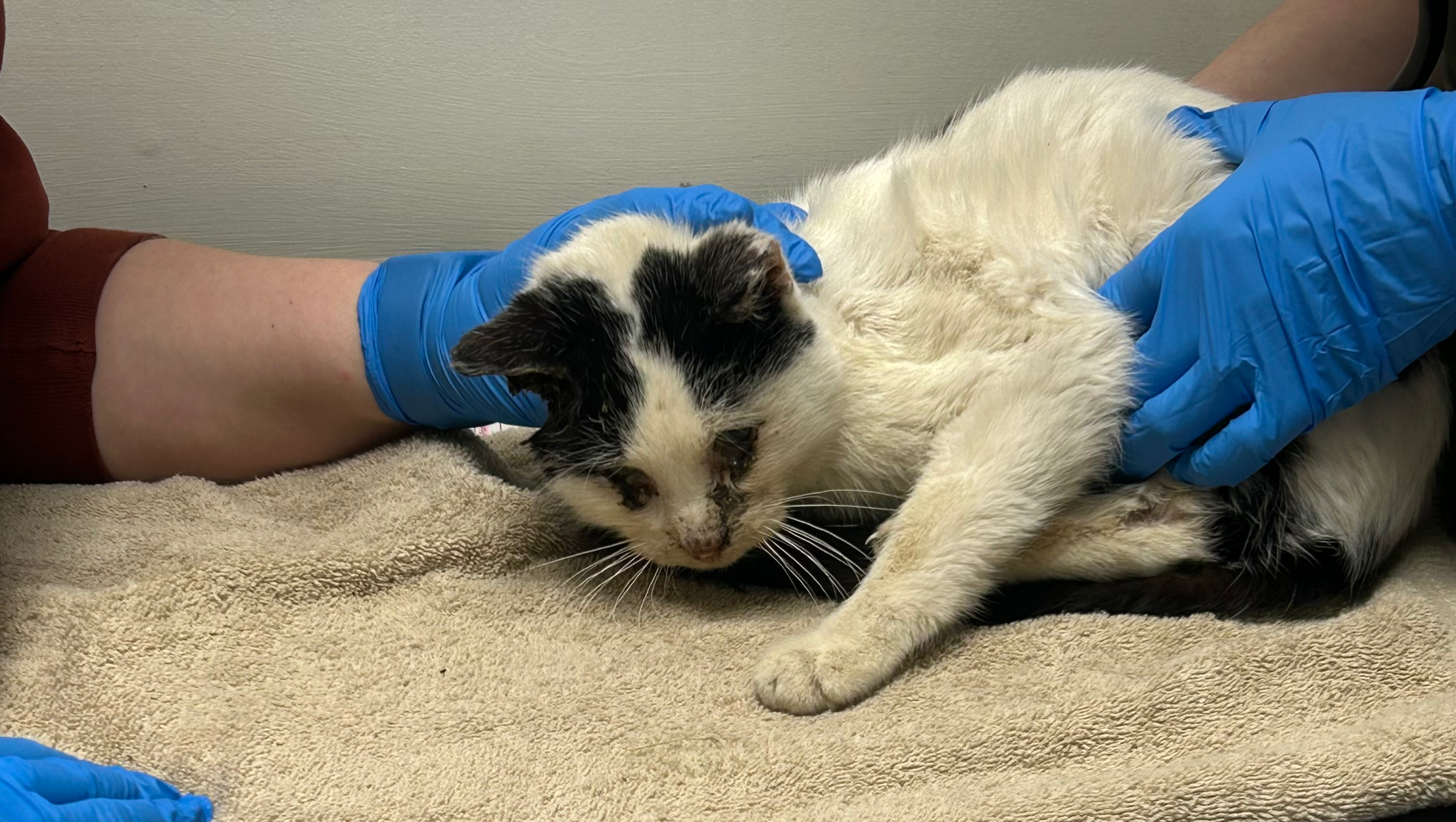 I rescued this kitty from a local farm where I pick up hay regularly. The farmer doesn’t care to offer any medical care for the cats and really didn’t ask for the cats at all, as apparently they just show up. I haven’t been there this winter really so when I went to get hay today this particular cat was frail, falling over when trying to walk, and just extremely sickly. I took the cat to the vet and got this tiny 4 pound boy some basic treatment for an upper respiratory infection, ear infection, parasites, and dehydration. The cat is resting in my garage and will be surrendered to a rescue to hopefully recover and be placed in a new home at some point. This wasn’t an expense I had been prepared to cover and would welcome any donations to help cover the vet bill. Hopefully we can get this little guy healthy and into a new home that loves and cares for him. Thank you to those interested in helping!