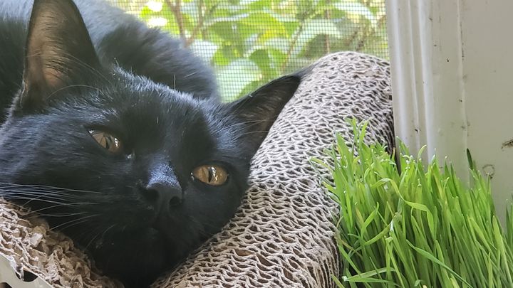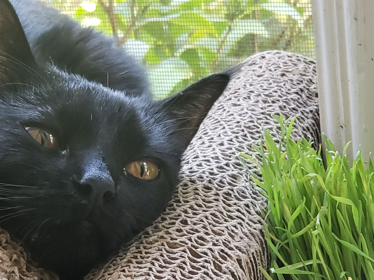 We adopted Wednesday Magica Crash in May of 2020, after Eric’s therapy cat Magic passed away. We were devastated by his loss, but when we saw our Wednesday we knew we had to intervene. When we met her she was living in a cat hoarder’s apartment in Los Angeles. When we first saw her she was: Emaciated, covered in seed ticks, infested with fleas and ear mites, and both of her eyes were badly infected and oozing yellow pus. She was the runt of her litter. There was no way we could leave her there, and we took her home expecting that she would pass away, but that at least she would have a clean bed to rest in. She weighed 6 ounces, which is less than a can of red-bull, and she was five weeks old.