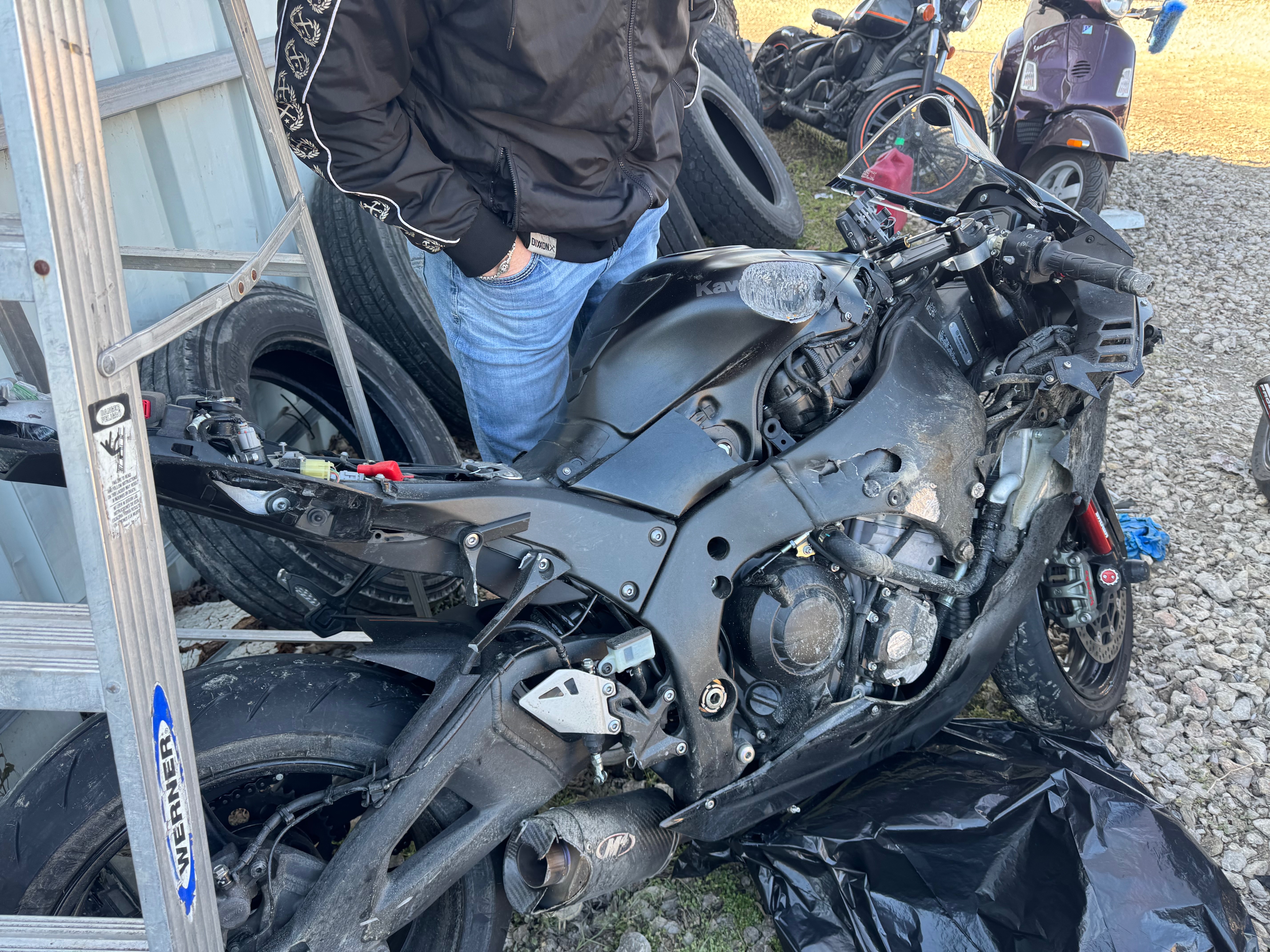 Sean’s bike was completely totaled, and he is now facing a long recovery with the possibility of losing his right leg not off the table. He is unable to work for the foreseeable future.