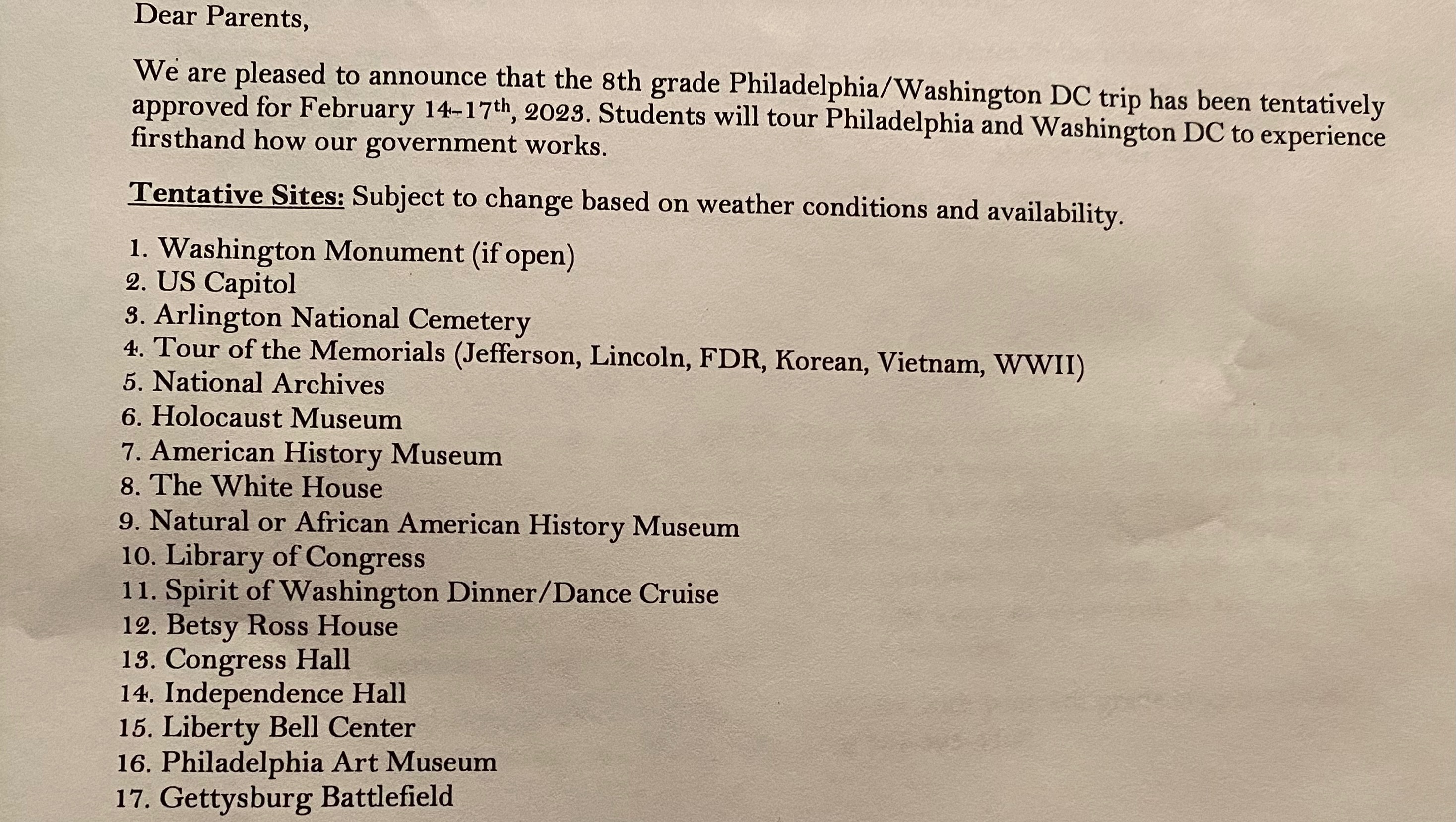 Johnny’s 8th grade class is traveling to Washington DC in February for their end of the year field trip. Cost of the trip is around $1500 and includes his flight, hotel stay, transportation and meals. This is something he really wants to do and needs help raising money in order to attend. Any donation is greatly appreciated.