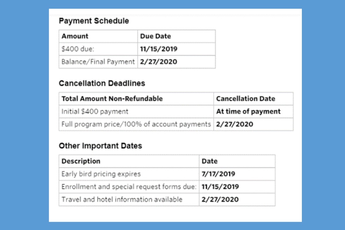 If for some reason a student cannot go on the trip, be it financial or other reasons, their families will receive a 100% refund for everything except the $400 deposit. (The refund claim must be made before February 27, 2020.) Any money that was donated will be reclaimed and applied to another student.