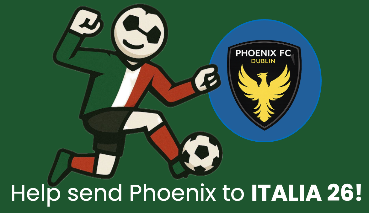 We’re the Phoenix FC U13s, and this April we have the chance to travel to Lake Garda, Italy, to play in an international football tournament. We train hard every week and would be so proud to represent our club, our families, and the Navan Road on the international stage. Any support you can give will help us make this once-in-a-lifetime trip a reality. Thank you for backing us!