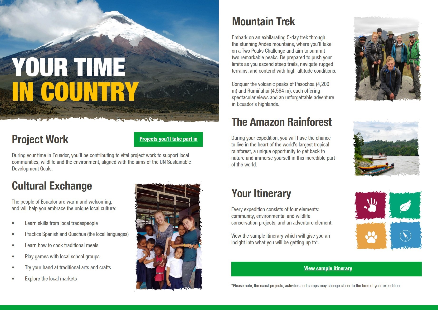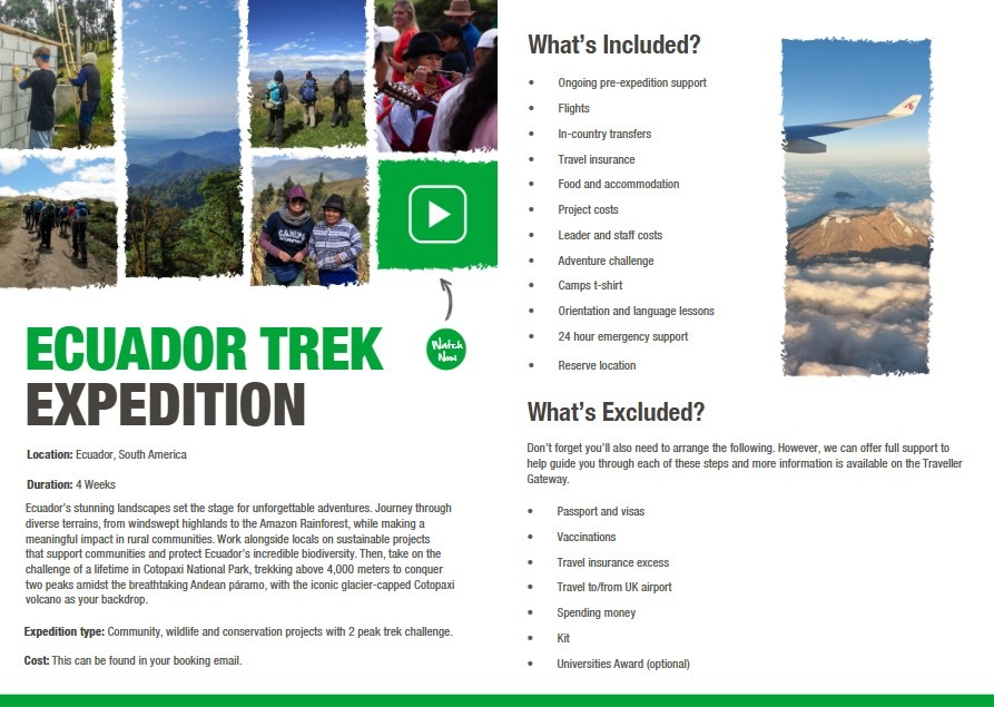 This unique journey is so much more than travel. During her time in Ecuador, Sarah-Leigh will work on a range of community, environmental, and conservation projects designed to make a meaningful and lasting difference. Camps International programmes focus on supporting local communities, improving living conditions, protecting wildlife, and preserving the environment, and Sarah-Leigh is determined to play her part.