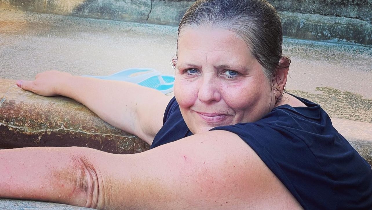 Our mom at a CA hot springs. She loves water!