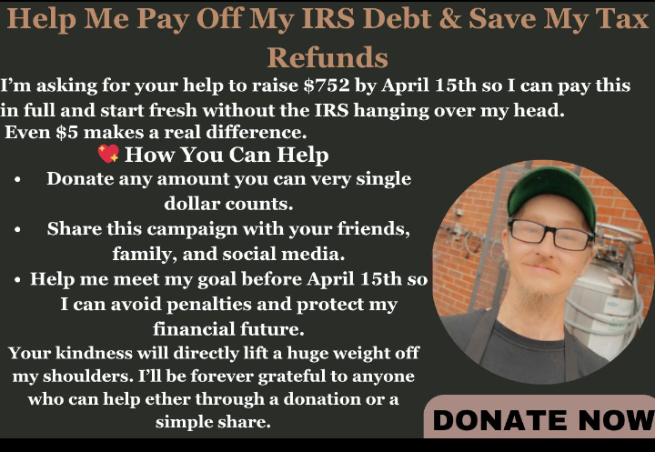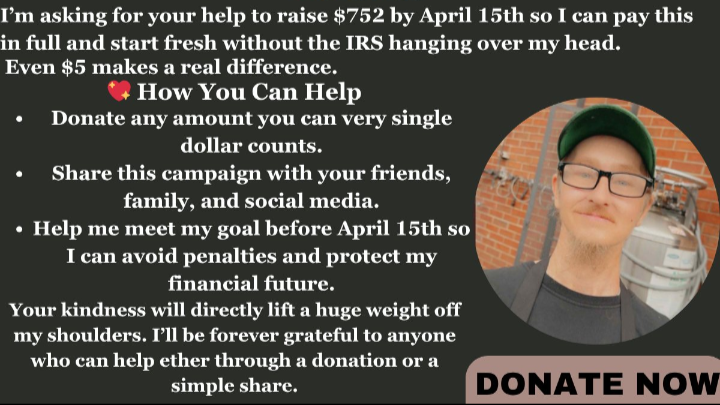 I’m asking for your help to raise $752 by April 15th so I can pay this in full and start fresh without the IRS hanging over my head. Even $5 makes a real difference.