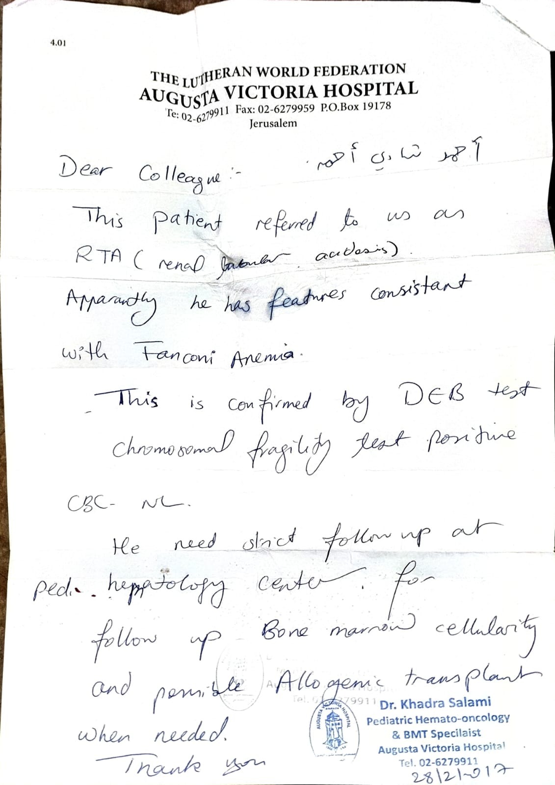 Yet, the greatest pain I carry is not for myself it’s for my little son, Ahmed, who was born with a rare and serious condition called Fanconi Anemia. This illness threatens his life and requires urgent medical treatment abroad, care that is currently unavailable where we live due to the limited medical resources.