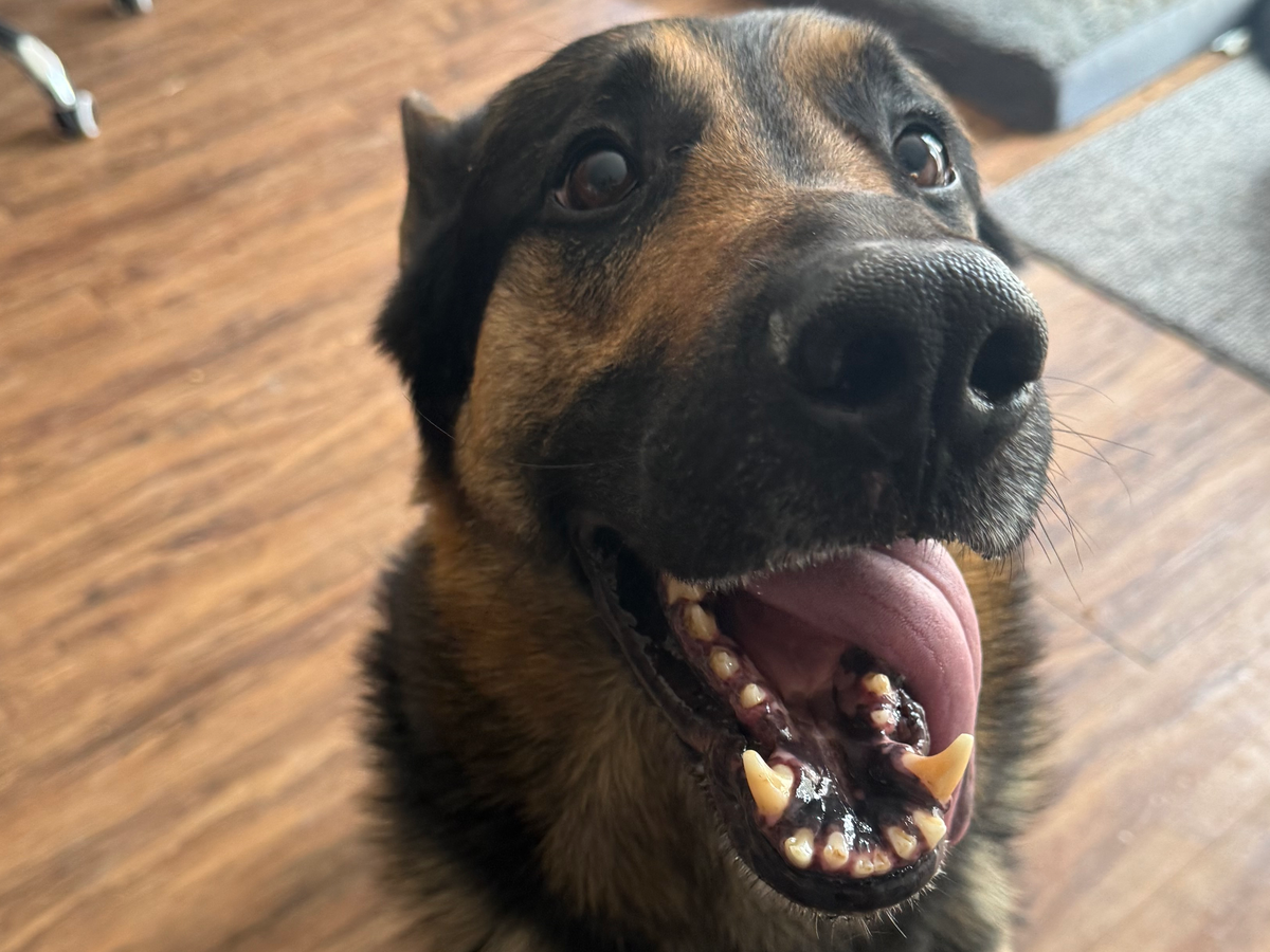 This is Shadow. He is a 5-year-old German Shepherd. We adopted him about 30 days ago from a family who couldn’t afford to keep him. He wasn’t taken to the vet, didn’t have vaccination records, and seemed so sad when we first got him. We noticed he would guard his food and treats, telling us he wasn’t getting enough to eat.
