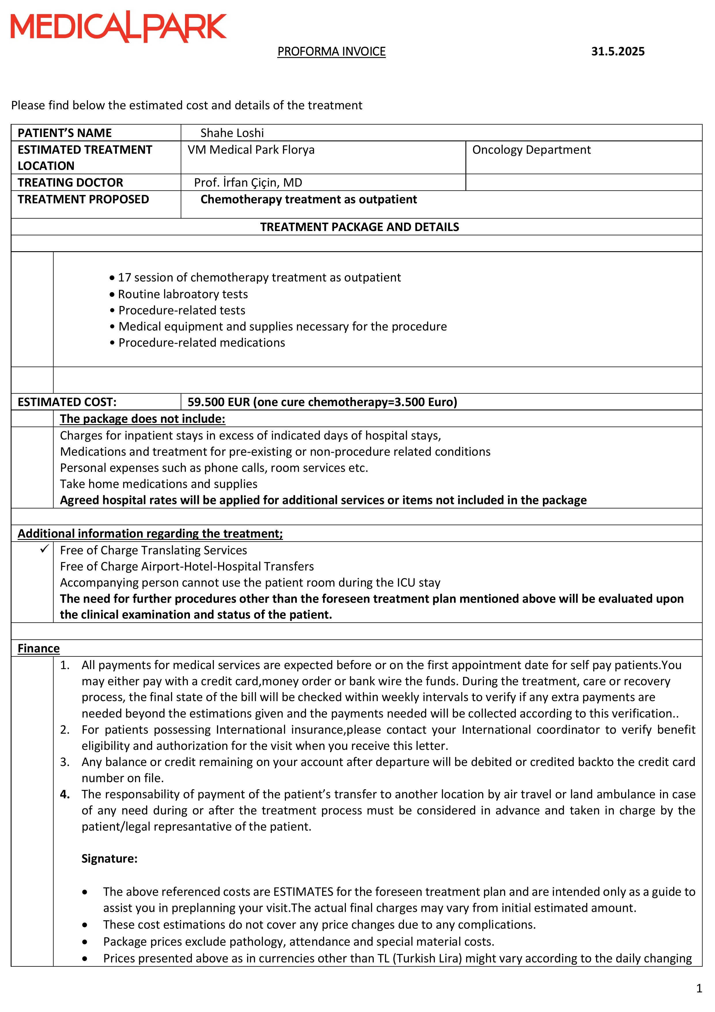 We live in Pejë, Kosovo, but due to the lack of advanced cancer treatment options in our country, we are forced to seek help abroad. Shahe is currently receiving treatment at Medical Park Hospital in Istanbul, Turkey, where she is undergoing a specialized therapy called Enhertu.