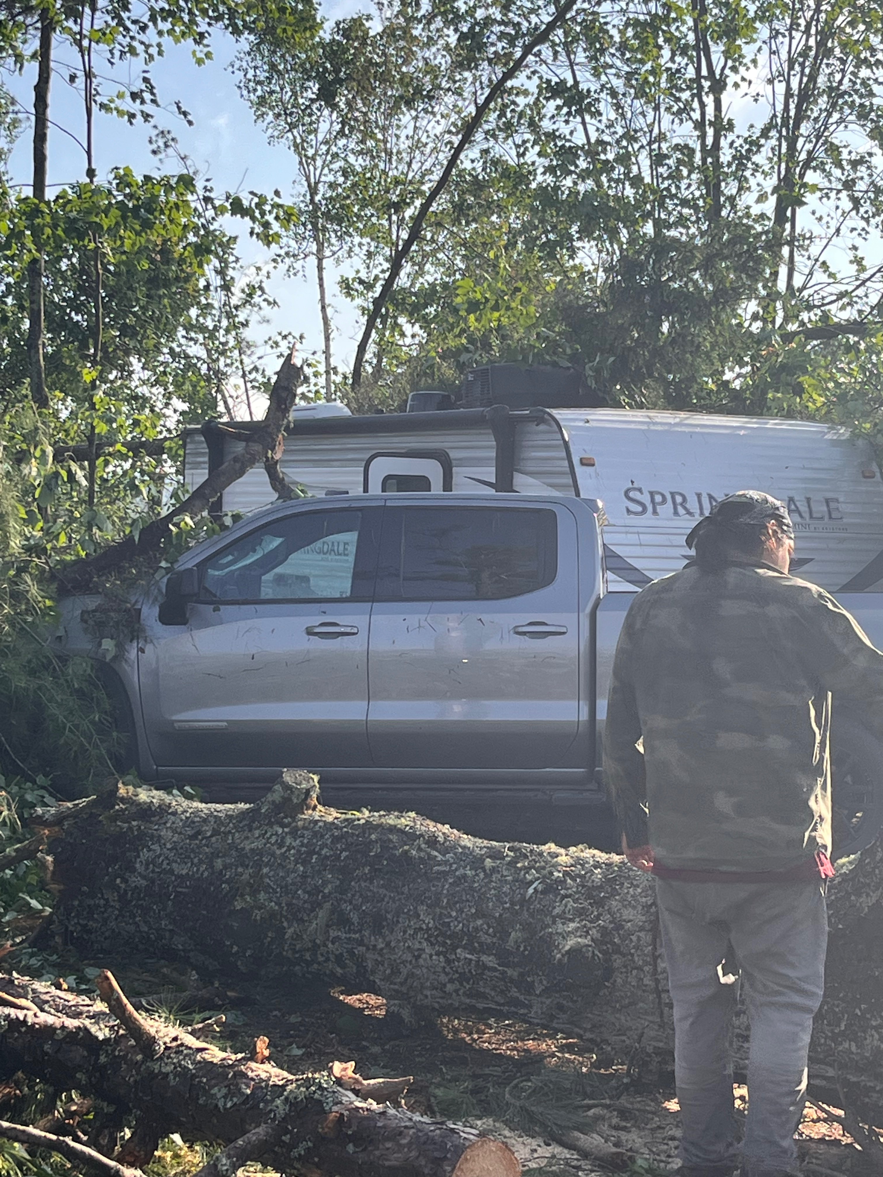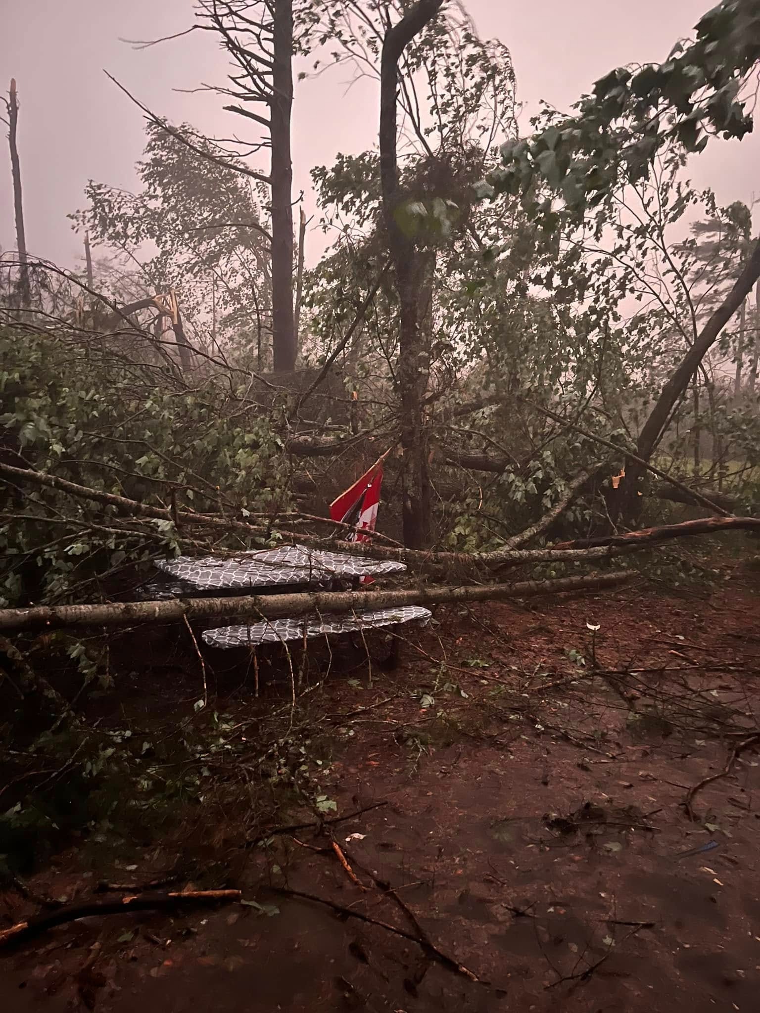 While camping at Samuel de Champlain Park, their site was hit by a sudden tornado. Their trailer, filled with years of memories, travel gear, and David’s cherished hunting and fishing equipment was destroyed.