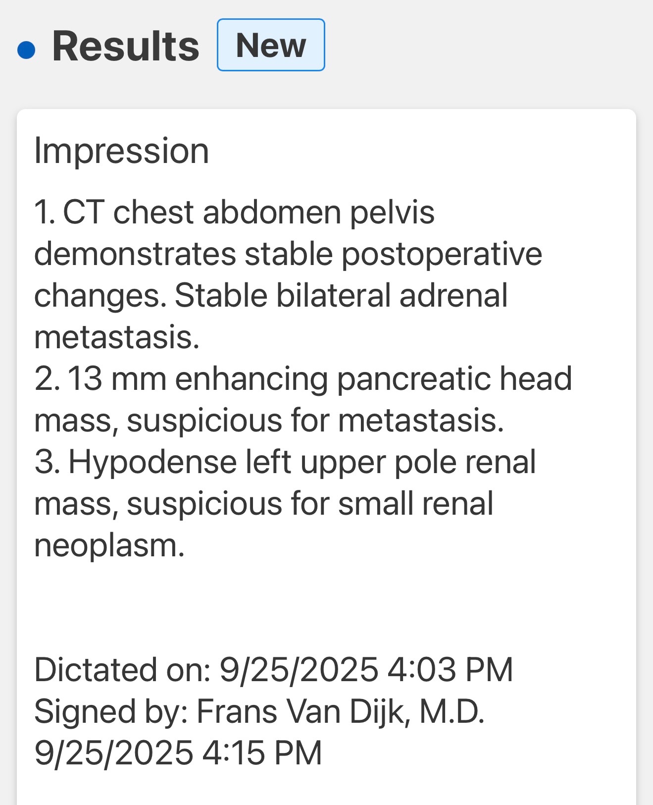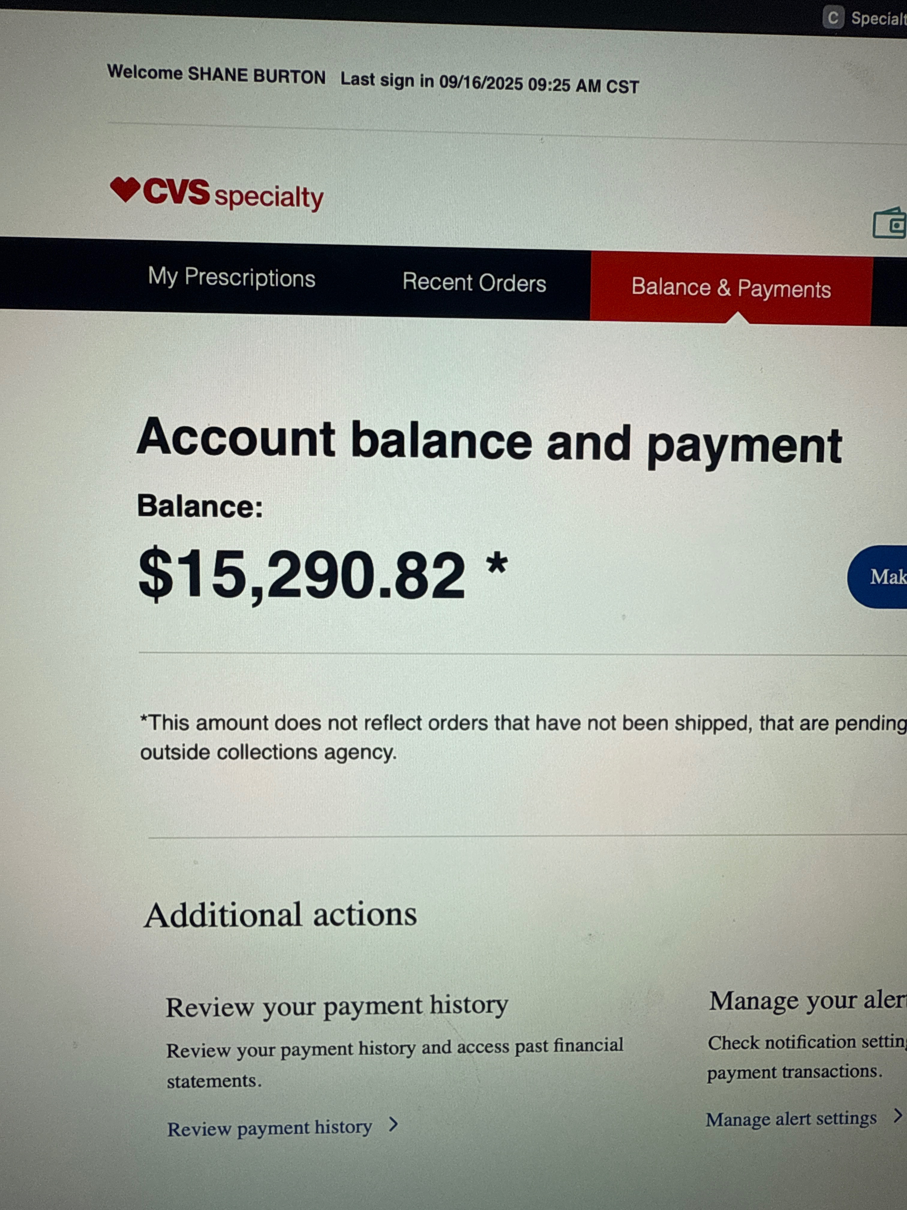 We currently owe them $15,290.82 for 2 months' worth of Inlyta, the oral chemo. I'm certain the cancer is spreading because he's not taking 2 pills a day as instructed by his oncologist.