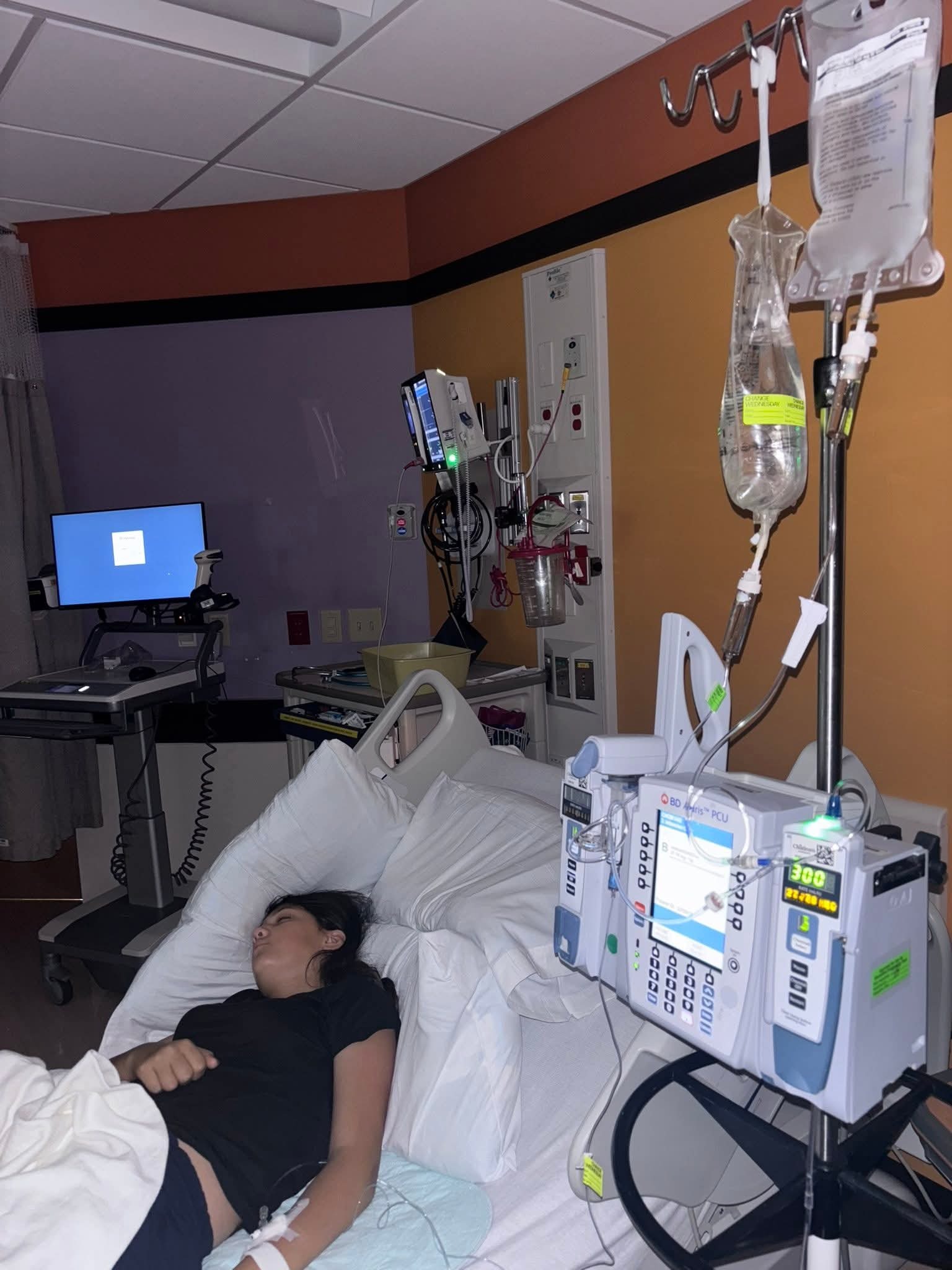 2 weeks she spent in the hospital. 2 different ER trips, 3 different hospitals, 3 ultrasounds, 1 CT scan, multiple labs, 6 IVs, appendectomy, drain tube put in for an abscess, PICC line, 5 days of IV nutrition, 4 shots of hyaluronidase.