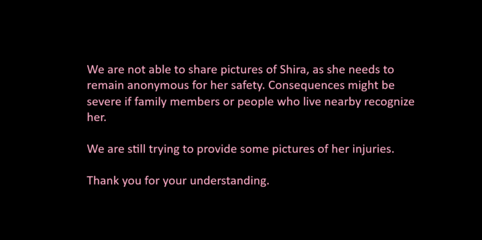 Shira is now in the hospital, has undergone emergency surgery and will need multiple operations and long-term care to recover physically and emotionally.