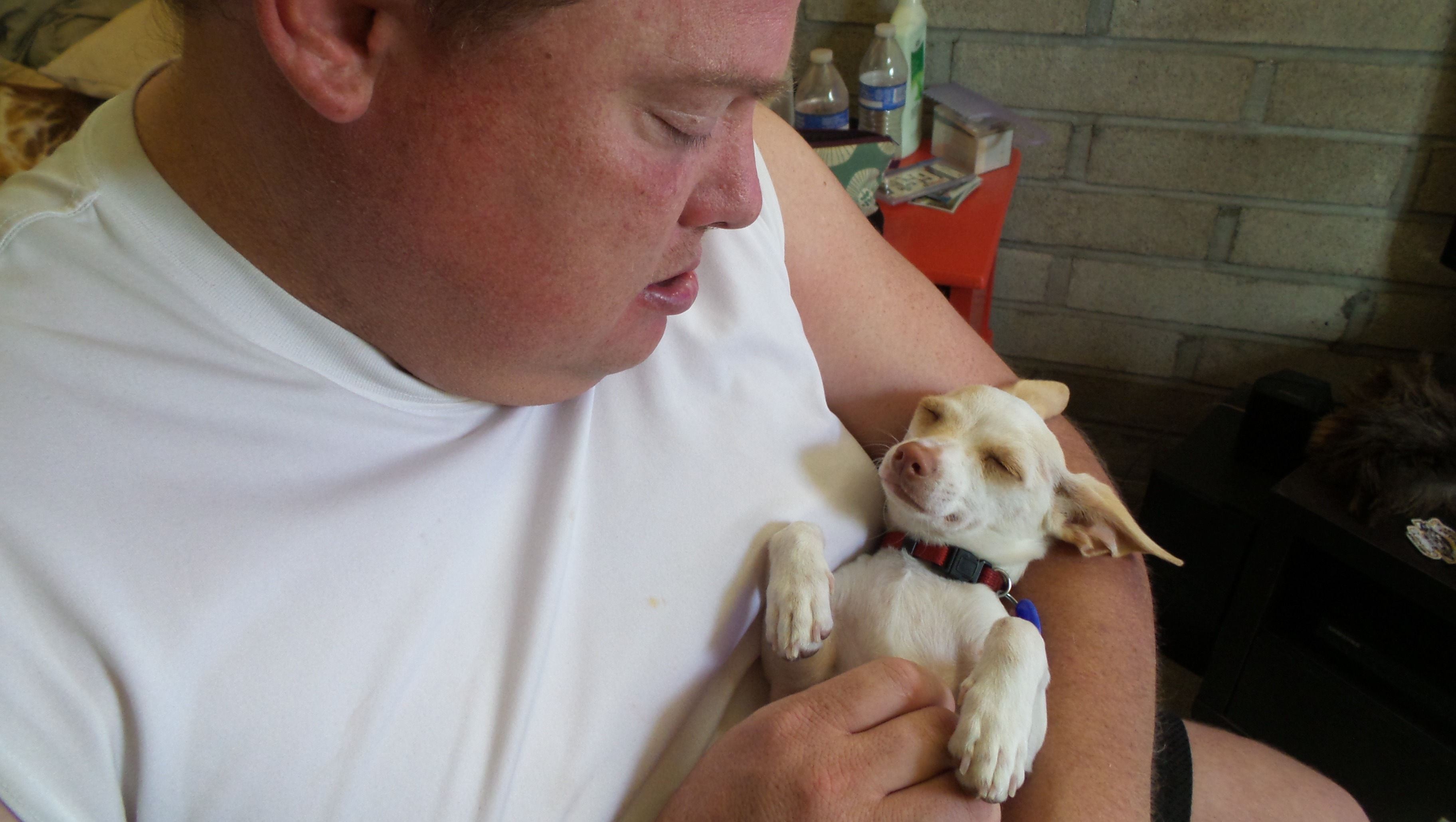 Before coming into our lives, Shorty had a rough (ruff) start to his life. He was thrown from a moving vehicle and suffered a little brain damage before being rescued. How anyone could do that to a little puppy is unimaginable, but he luckily found the perfect forever home with Carin.