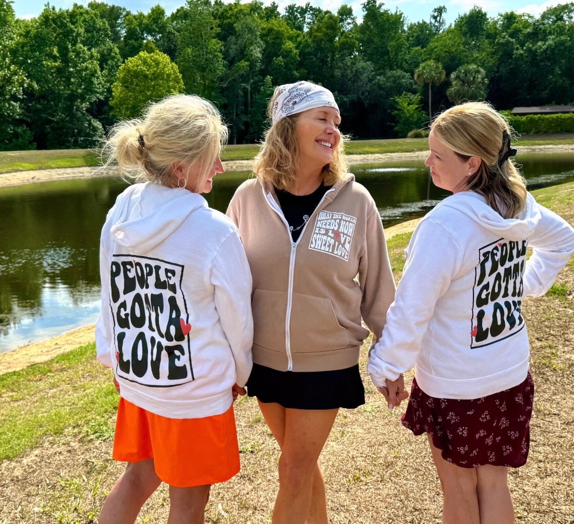 For donations $250 or greater, you will receive a Limited Edition PeopleGottaLOVE Zip Up Lightweight Hoodie (Zip Up featured in last photo).