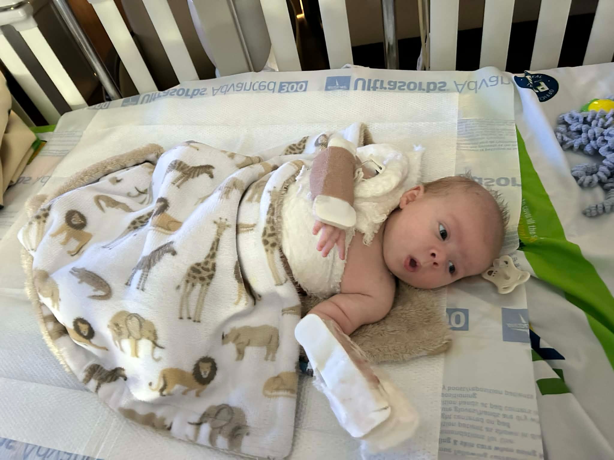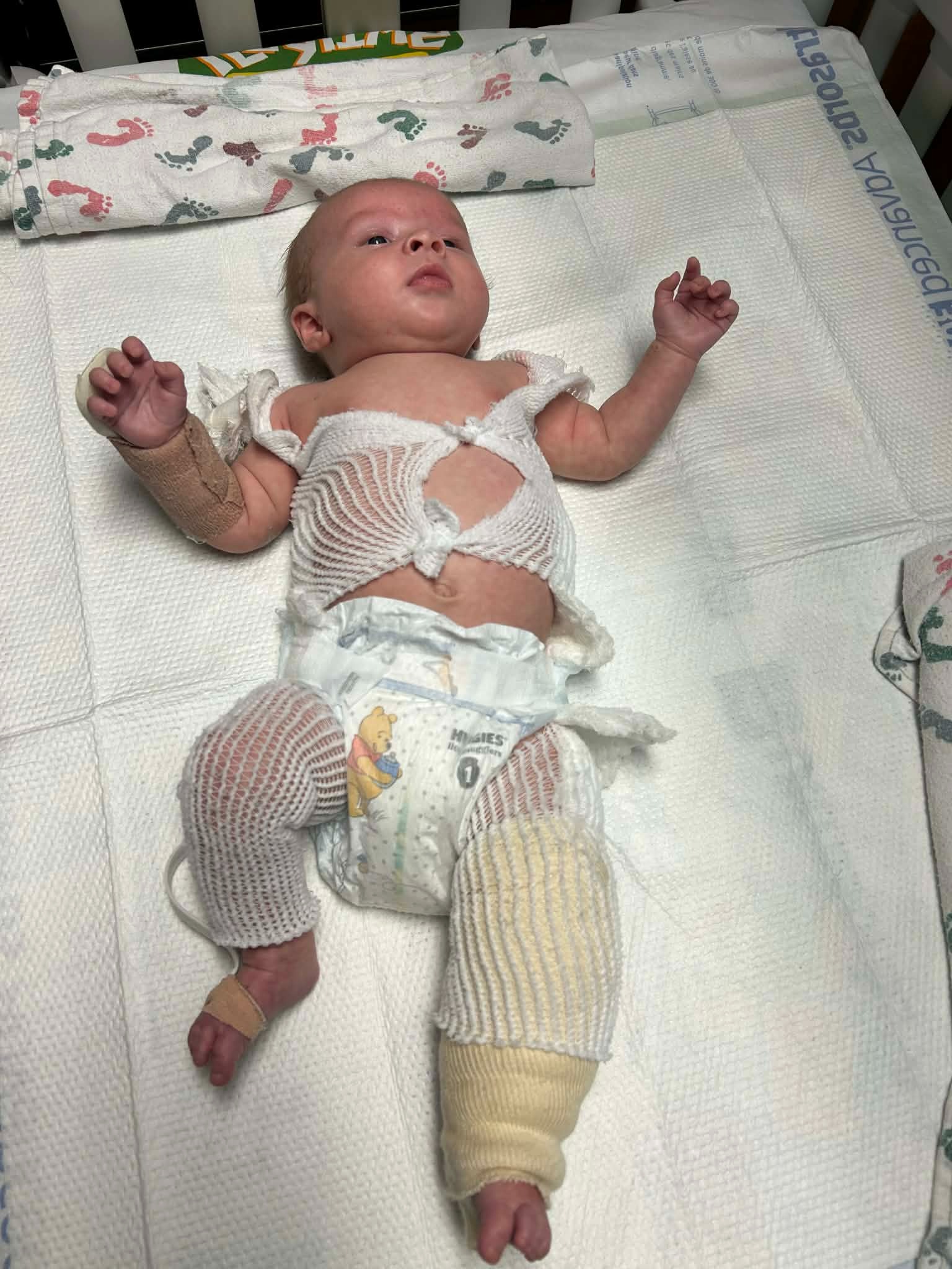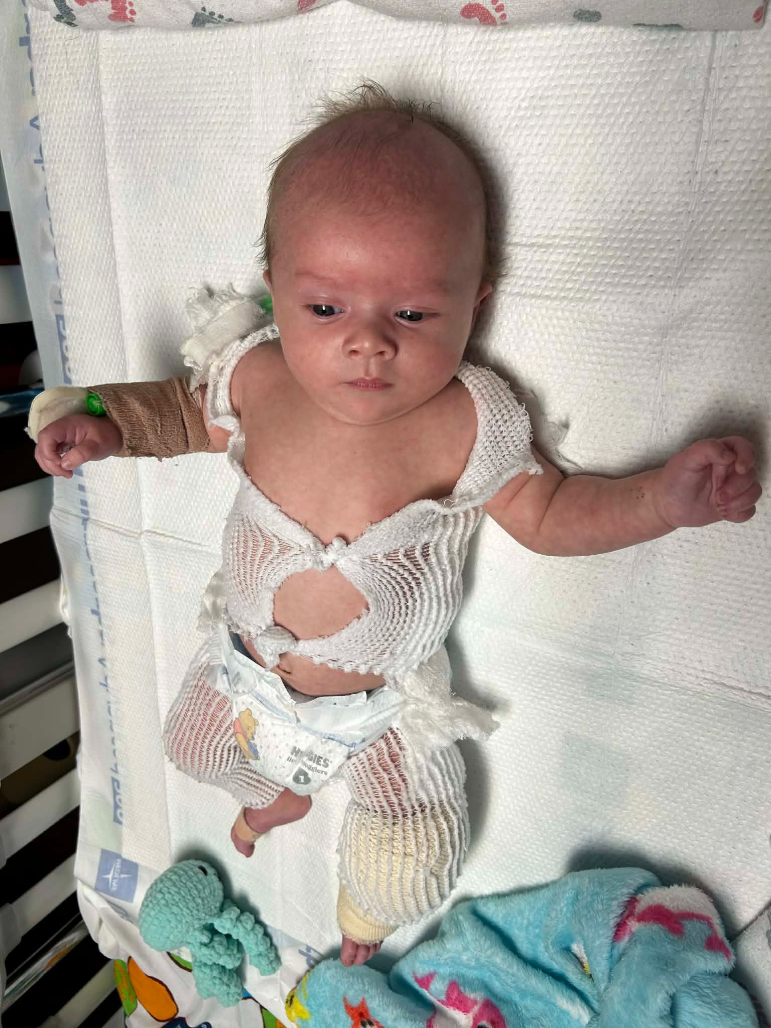 He underwent a successful skin graft procedure, where doctors removed skin from his back to treat his burns. This left him with three large surgical sites on his tiny body. After surgery, there was an additional complication that required further intervention, adding to the stress and pain he has already endured.