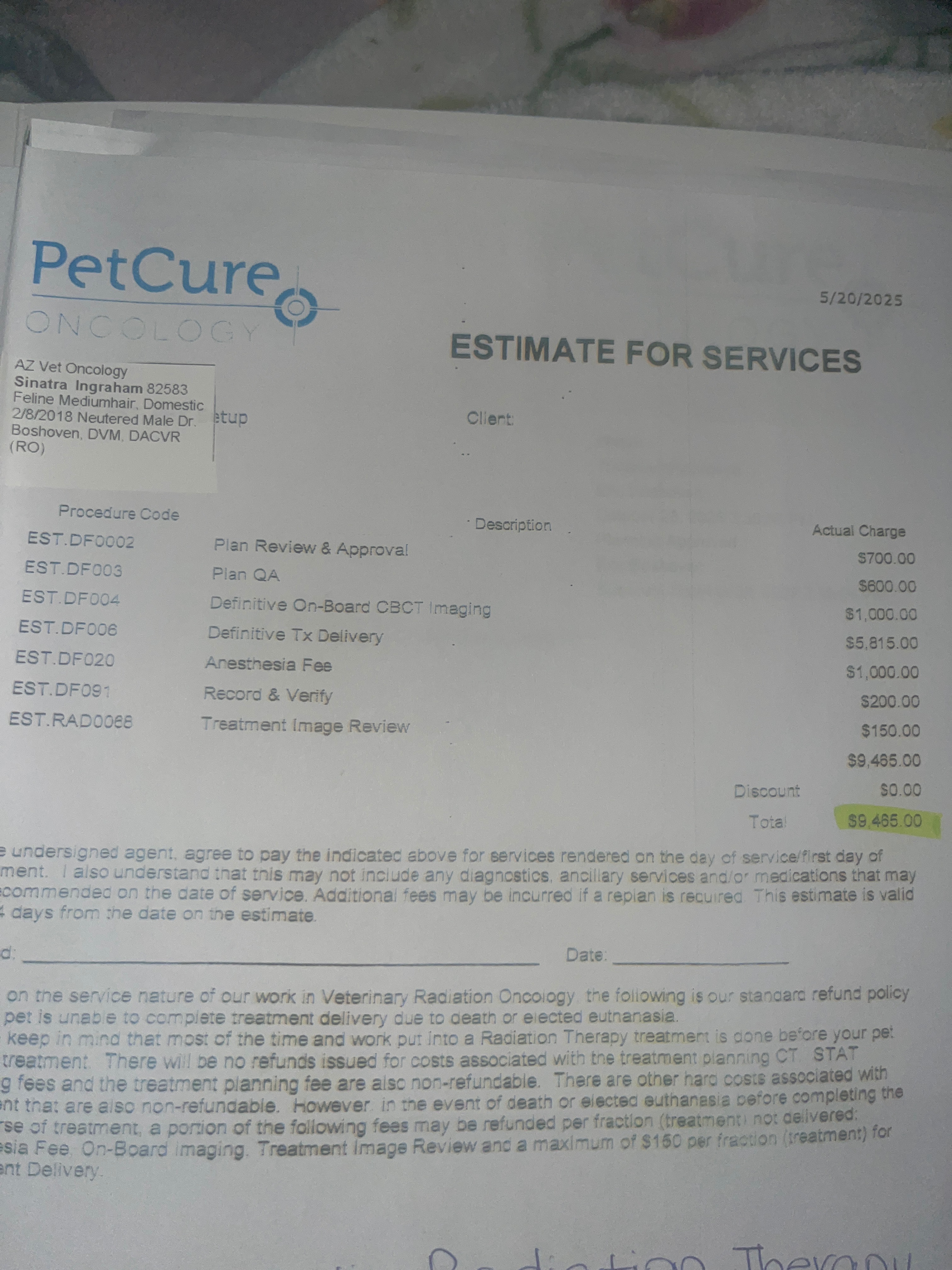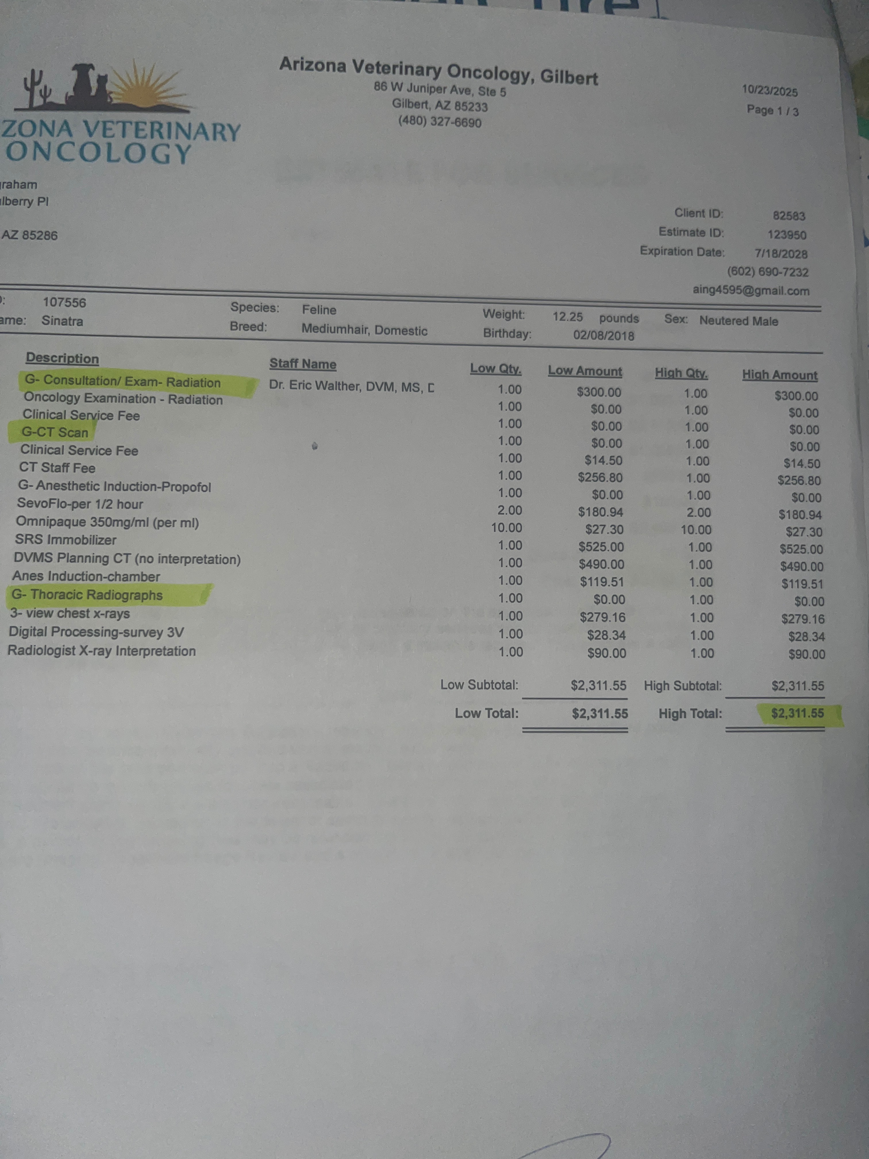 On 11/04/2025, Sinatra's mama was laid off from her job. While I was originally able to afford some care, with being laid off, we're really struggling to afford paying back the care credit and ongoing prescriptions and care. If you could help contribute anything, it would really help! Unfortunately, our family has had quite a bit of bad luck. If you are able to help even a little, it would help our family greatly afford his steroids, prescription food, and paying back the care credit for his radiation and CT (which have estimates attached in the images).