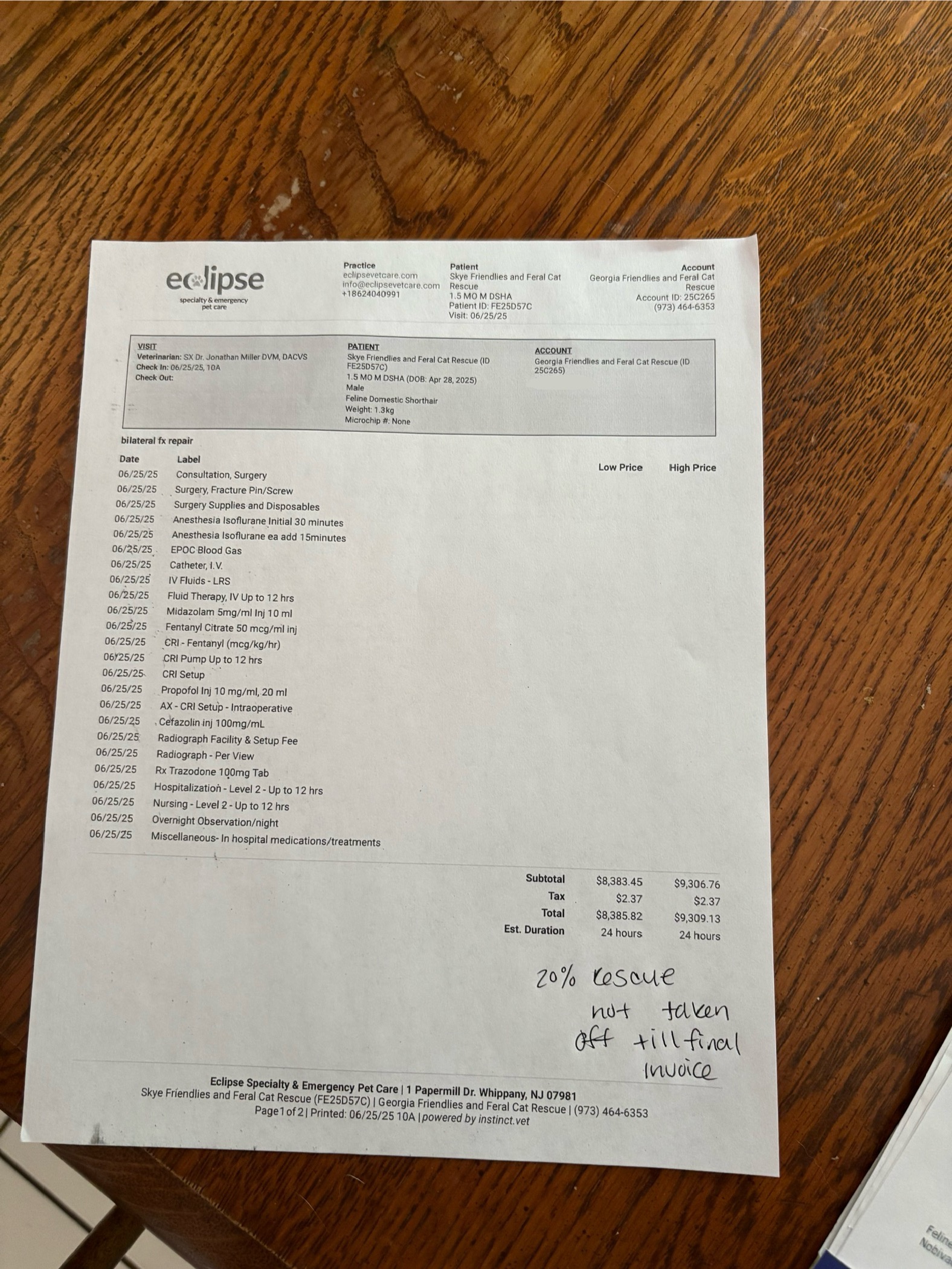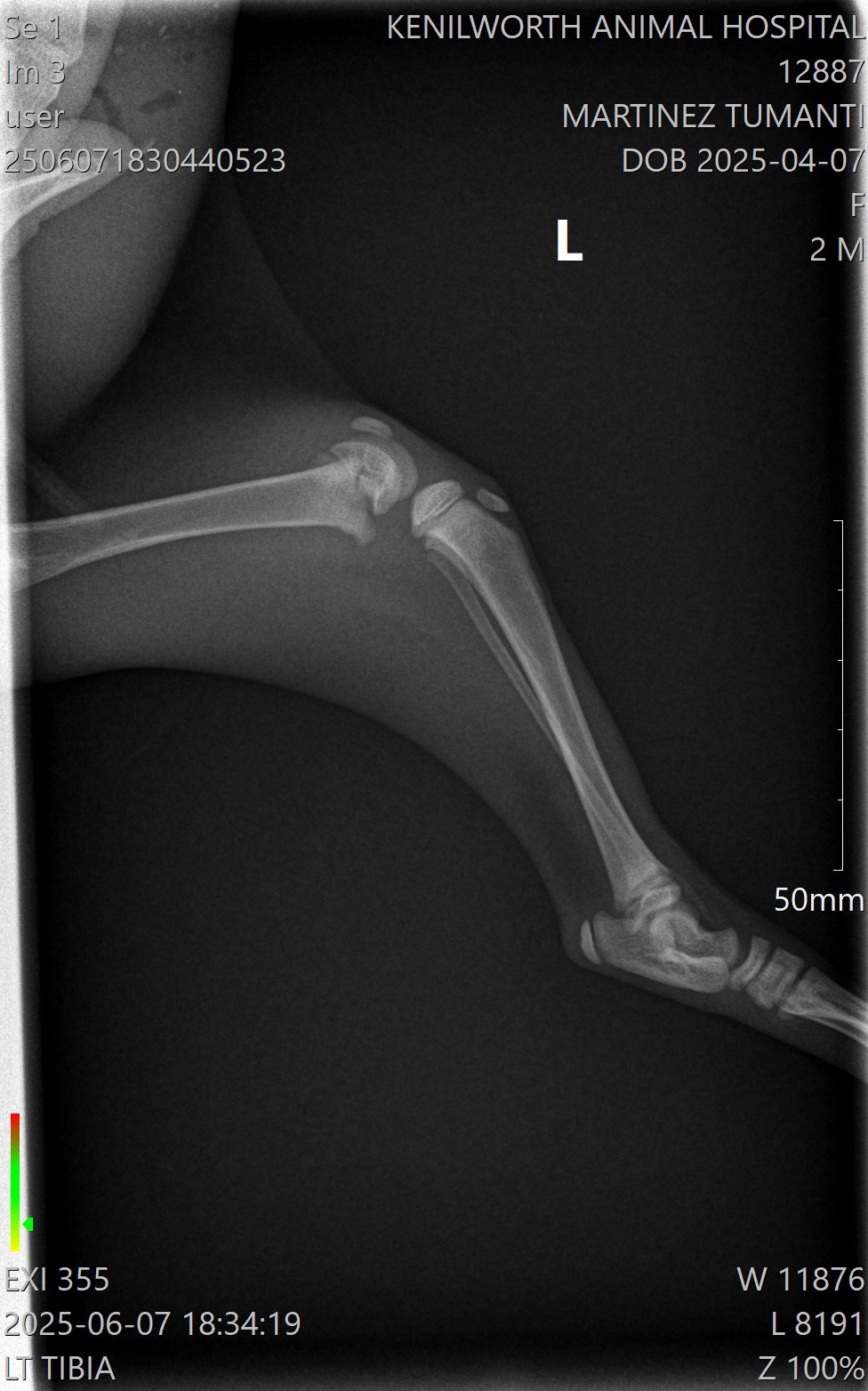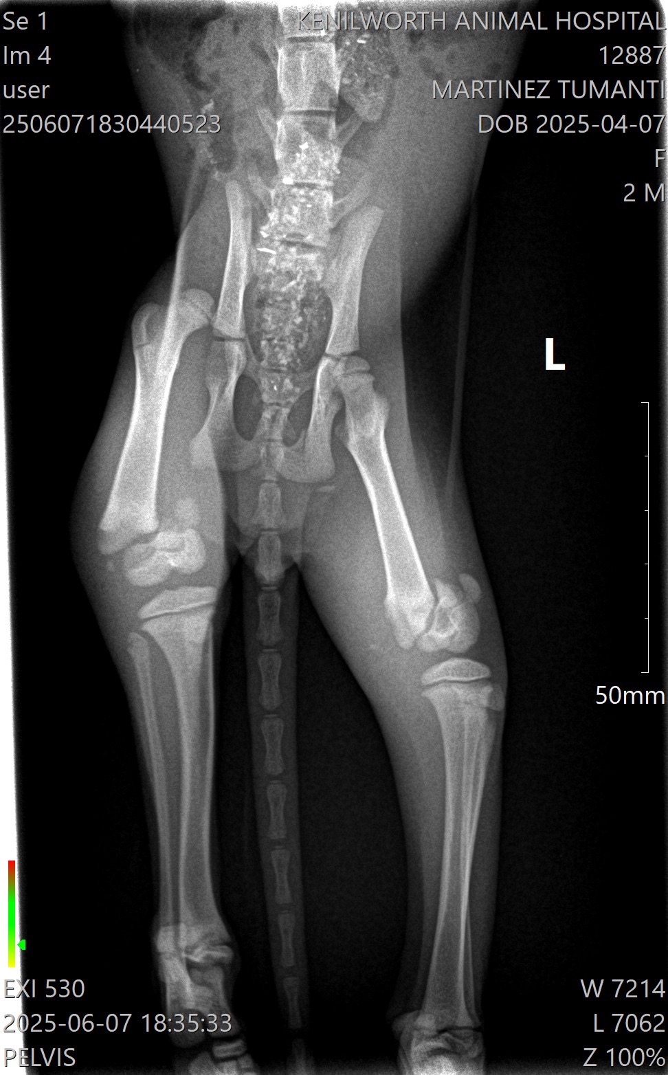 After many vet consults and visits, an orthopedic specialist at Eclipse Veterinary Hospital confirmed the dislocated hip and also found bilateral distal fractures in both of his hind legs. He will need surgical repair of the fractures, follow-up care, X-rays and pain management.