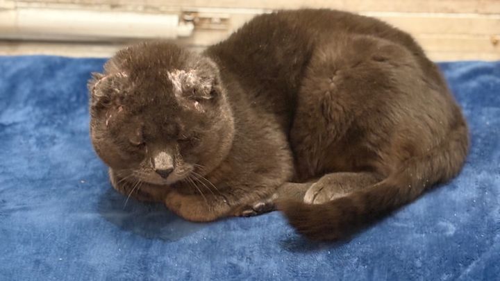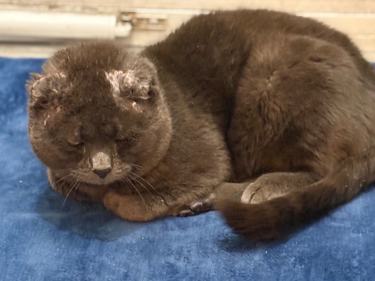 Hi everyone! This is our stray cat, Smokey. About six months ago, Smokey started coming to our front door. When he first appeared, it was clear he was very feral and had no owner. He had no ears, his back legs were (and still are) extremely wobbly, and he is not fixed. Despite his rough start, we began leaving food and water out for him every day, hoping to earn his trust and help him feel safe.