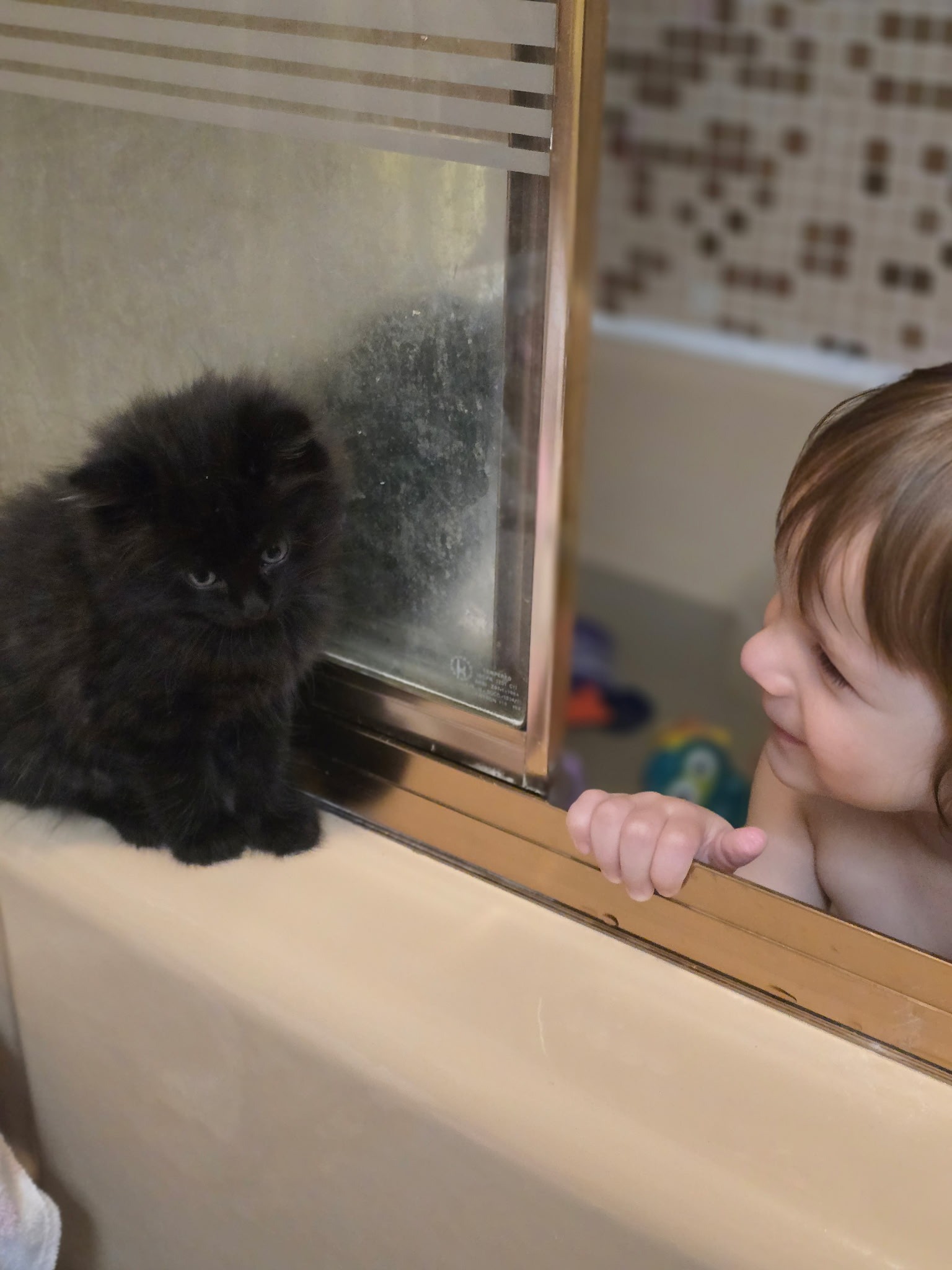 Earlier this year, my wife Chelsea found a kitten abandoned and cold in the cart storage area at our local Walmart in the middle of a snowstorm. Being the empathetic and loving woman that she is, she wrapped him up in her coat, took him inside Walmart to buy a cat carrier, and brought him home. This was right on the heels of our big girl cat Nermal having tumor removal surgery for her terminal breast cancer (which we are still slowly paying off along with treatment costs for our previous cat Alaska's stomach cancer - which took place when Chelsea simultaneously lost her job and gave birth to Penny). The vets told us our little black fluffball was about seven weeks old at the time he came home with Chelsea. He was so dark and dirty when he got home, we decided to name him Smudge.