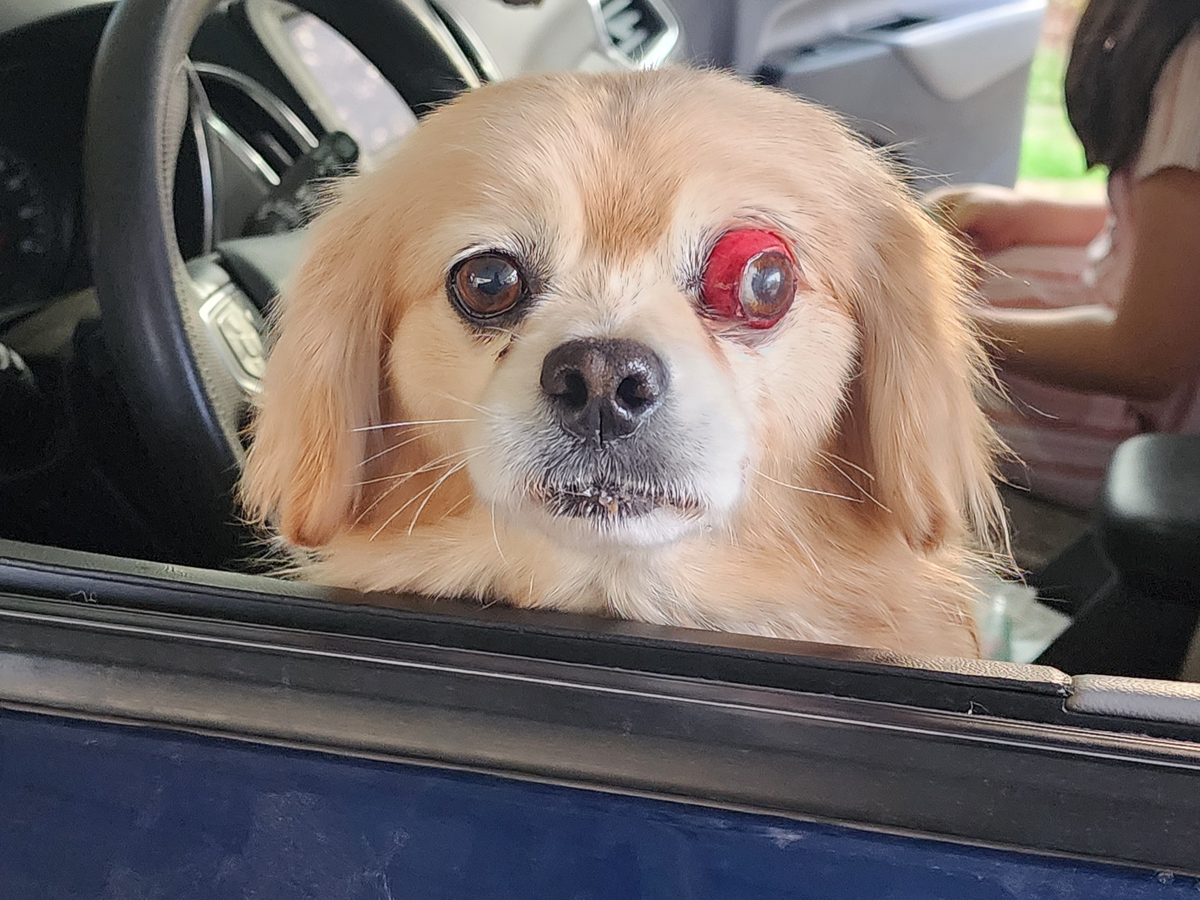 Hi ! My 12 year old puppy dog snuggles was rough playing outside today and due to his type of breed his eyeball is now prolapsed. I urgently need to bring him to the vet to hope and save his eye .
