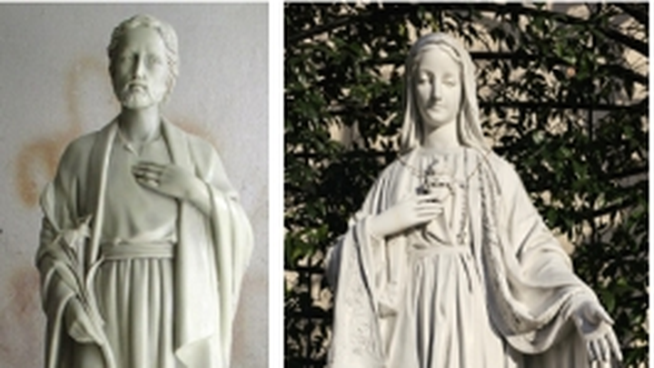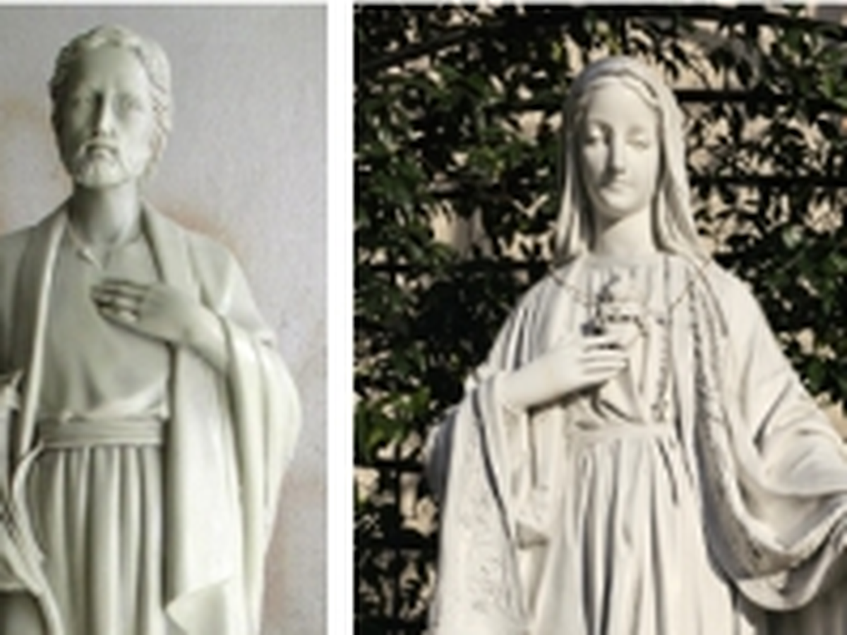 The Chaste Heart of Joseph statue will have a heart under his left hand, similar to the Sacred Heart of Mary statue pictured on the right, which is the statue in the Solano courtyard.