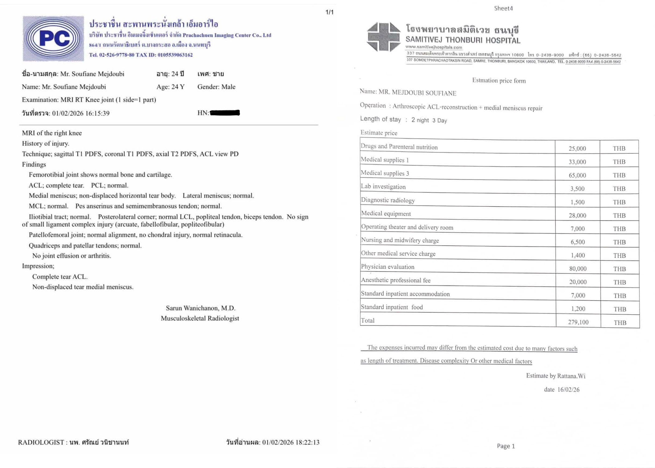 The estimated cost of surgery at Samitivej Thonburi Hospital in Bangkok is 279,100 THB (approximately £6,600). In addition, several months of structured rehabilitation and physiotherapy will be required for him to return safely to competition.