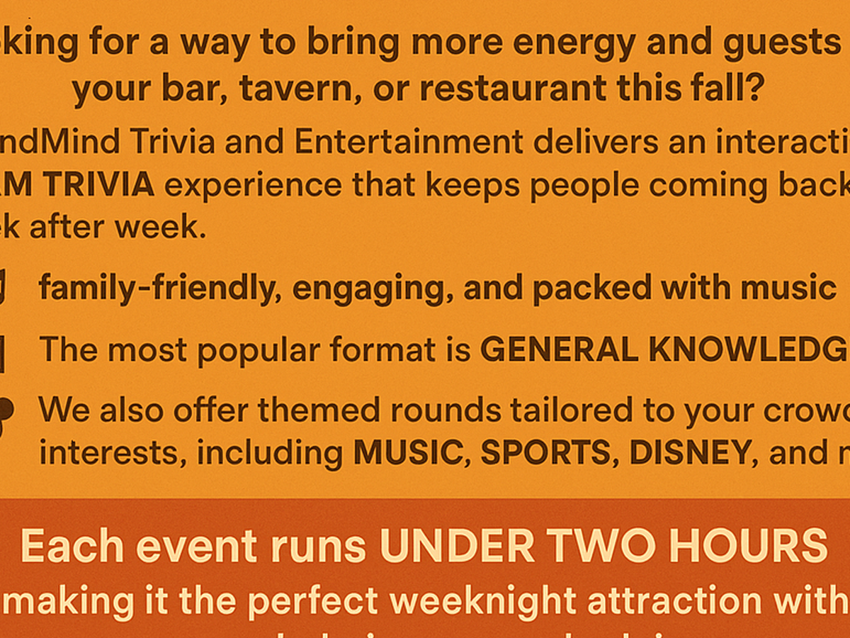 My name is Mike, and I’m the owner of SoundMind Trivia and Entertainment, a business I’ve proudly run since 2010. We specialize in high-energy, interactive Team Trivia events across Chemung, Steuben, and Tioga Counties in Southern NY. Our events bring people together in local taverns, restaurants, churches, and even at private celebrations and corporate gatherings. Over the years, I’ve seen firsthand how these events can lift spirits, create connections, and even help others raise funds for their own causes.