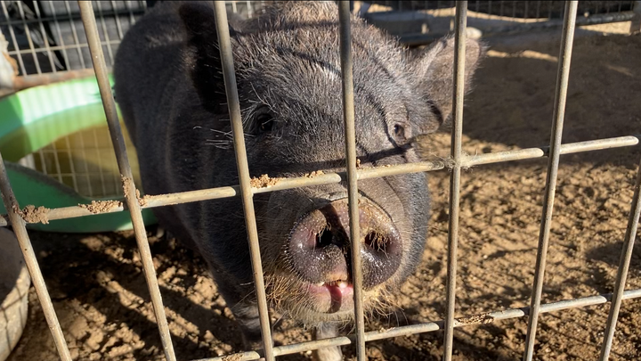 I recently rescued this friendly young pig from being sent to auction by my local shelter, something they just recently started doing with their livestock intakes. She is approximately 1.5 years old and unspayed.