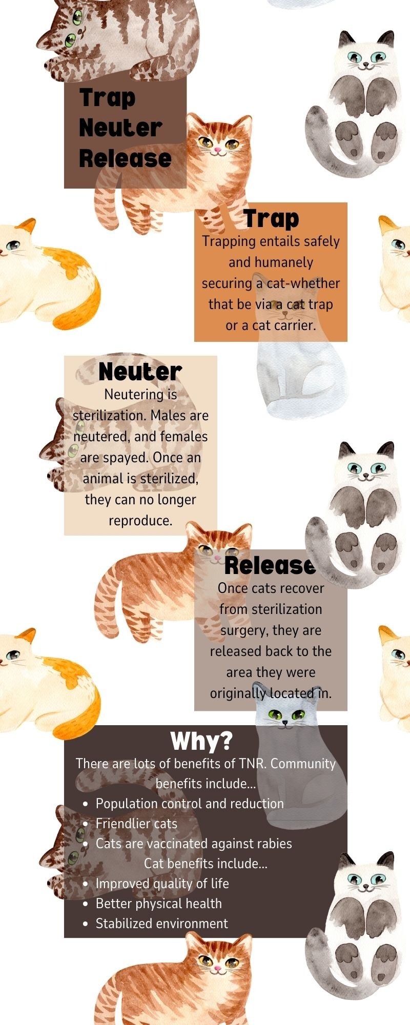 Unfortunately, the Humane Society now charges a fee per cat for TNR, and this year, there are no funds available to continue this important work. Without support, the feral cat population will grow, leading to more illness and hardship for these animals. Your donation will help cover the cost of spaying and neutering feral and community cats, ensuring they live healthier lives and helping our community stay safe and compassionate.