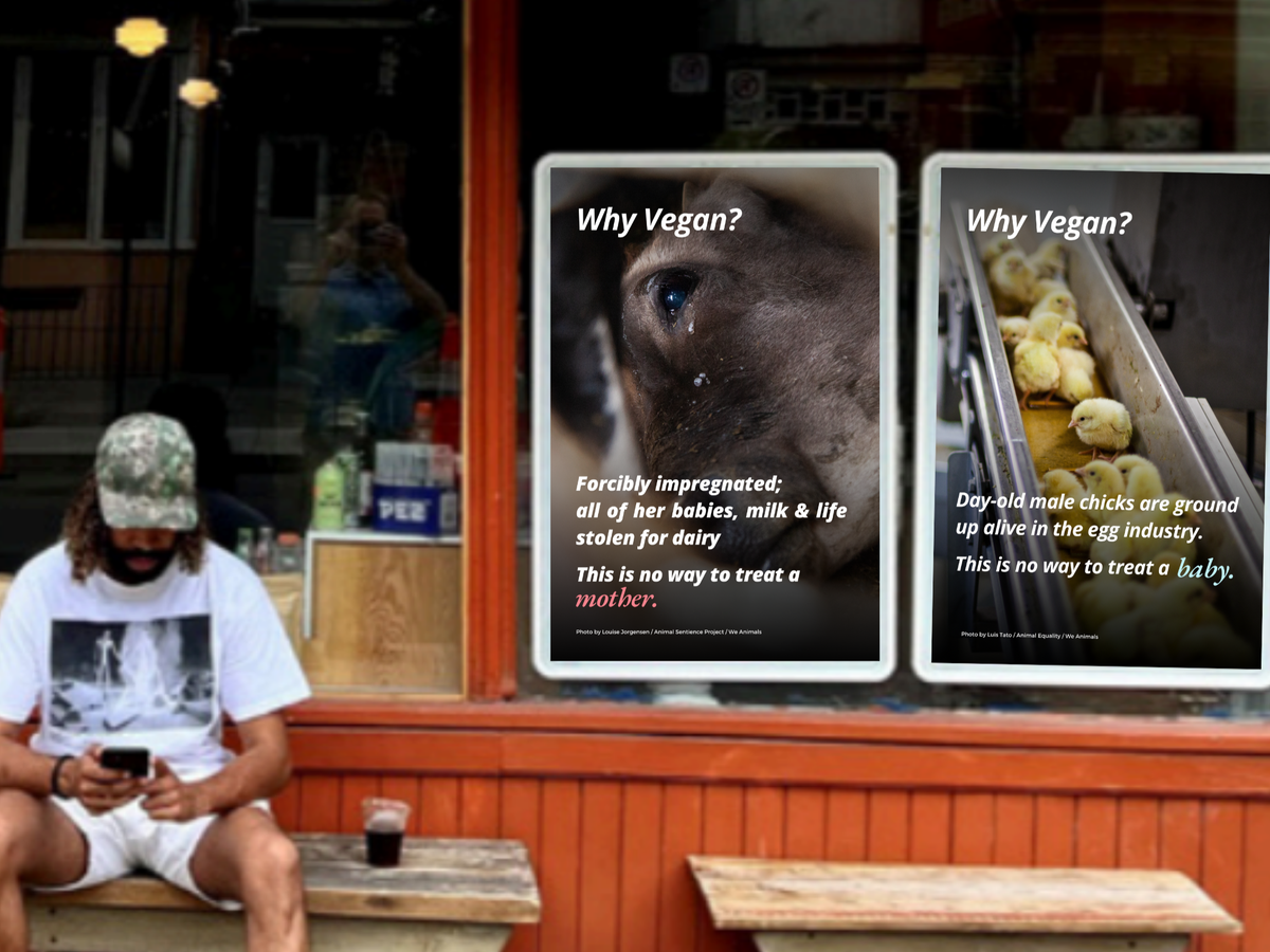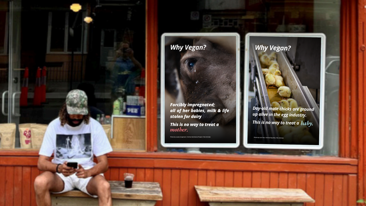 We’re raising $2,300 to place 20 powerful vegan storefront ads across Toronto that expose the hidden suffering in the meat, dairy, and egg industries.