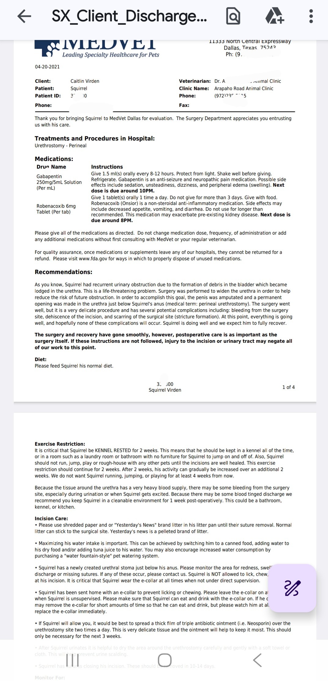 Unfortunately, Squirrel falls into the small percentage where complications continue.