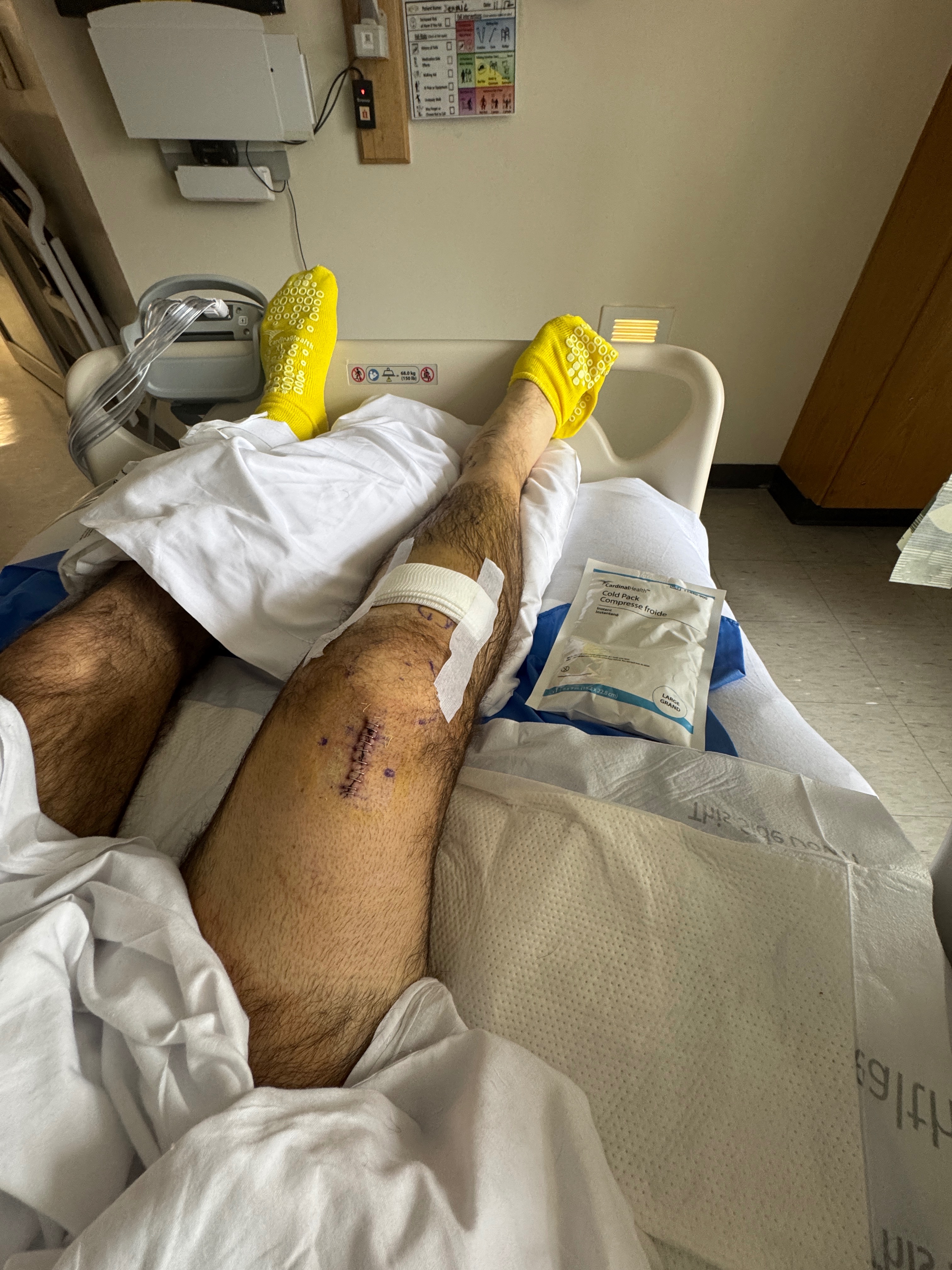 He is on blood thinners, struggling to move, in significant pain, and facing a long road to recovery and rehabilitation.