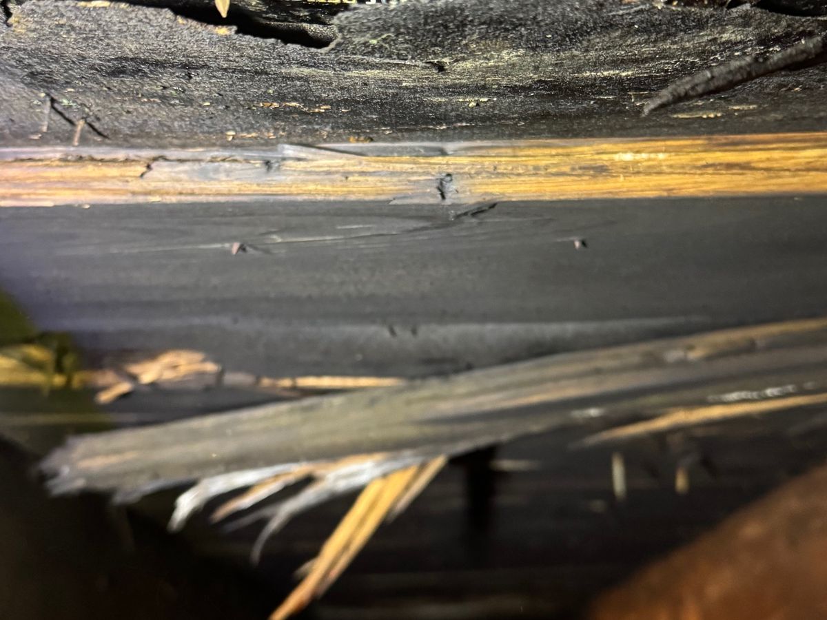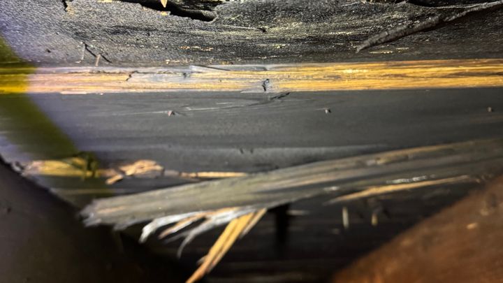 During this process, Steve noticed a leak in his front bedroom and upon investigation found that the boards used to support the shingles were rotting and falling apart. As you can see by the picture, the ceiling in the bedroom is being severely damaged and there is a potential for the roof to cave in if not fixed quickly. I received several estimates for replacing the roof and the average is $12-$20,000.