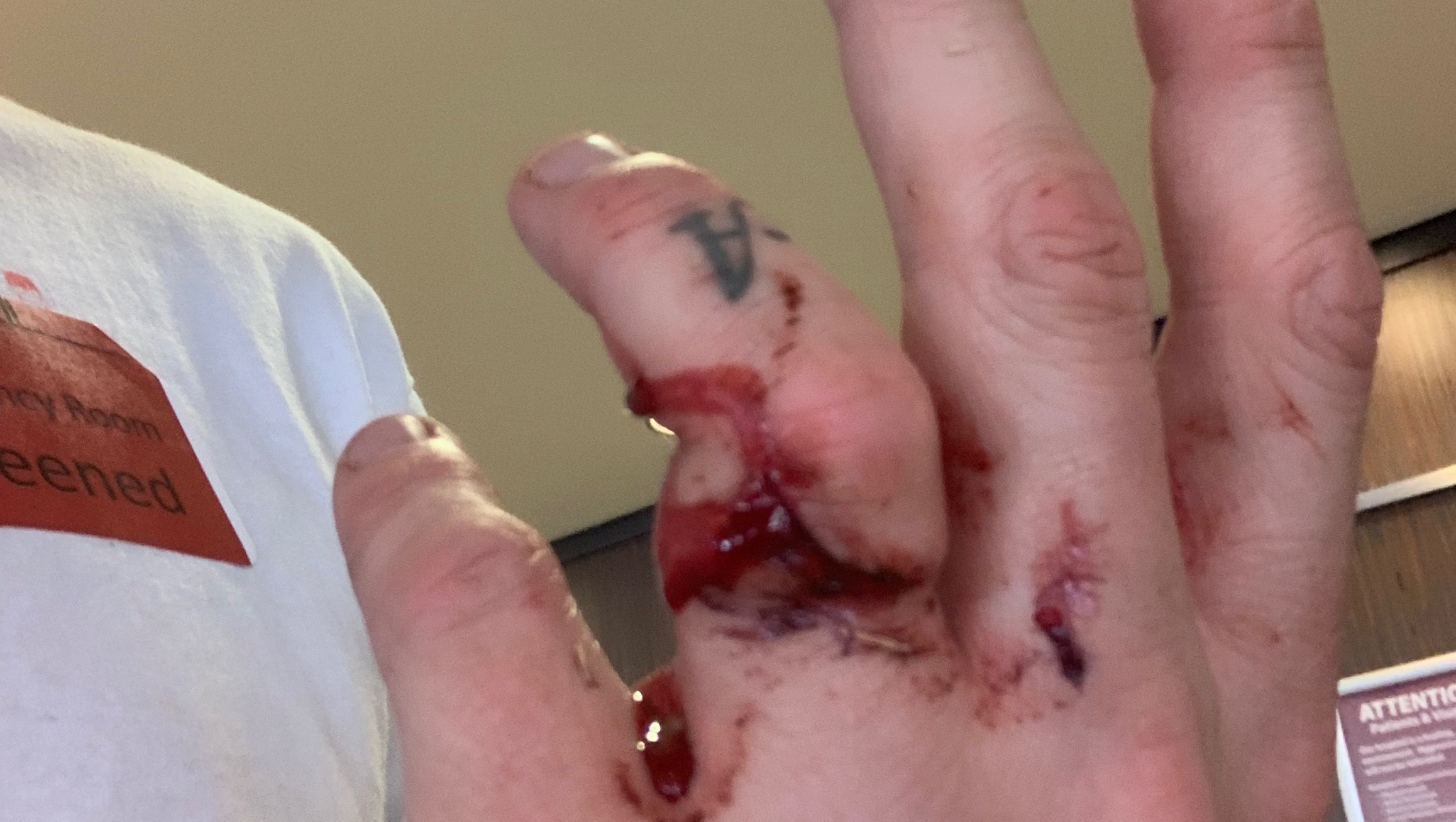 While Steve was enjoying watching the dogs enjoy their park time, Chief suddenly began to choke so Steve ran over to see what was happening when he realized Chief was in real danger. While he tried desperately to reach in to Chief’s mouth and throat to try and help him dislodge the ball Chief had accidentally swallowed in his excitement, Chief bit down on Steve’s hand very hard breaking his finger.