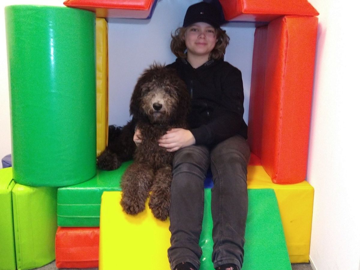 This is Storm, our now 5 months old puppy destined to become an assistance dog for our 11 year old son Caspar. Caspar is diagnosed with PTSD and an attachment disorder partly due to me, his father, being hospitalised multiple times over the last 4 years. Therapy has offered up till now little to no result, fortunately we now allready see that from the moment Storm could come with Caspar to therapy he helps Caspar to stick with his feelings and makes that Caspar can regulate his emotions on an healthy fassion. Caspar suffers from severe anxiety and a lack of self esteem to a point that he can not even attend school or be appart from us as a parent for even the shortest of time. All of his daily routine is being dominated by his fears and lack of certainties and forseeability when in contact with friends, classmates and other adults. In short, he can not function without one of us by his side resulting in us being less able to work. Let alone have some time to be anything other than a mom and dad. As the costs of the training of Storm is not covered by any insurance our the city we live in we kindly turn to the frendly community of internet extending above our own personal network to help out Caspar and Storm.