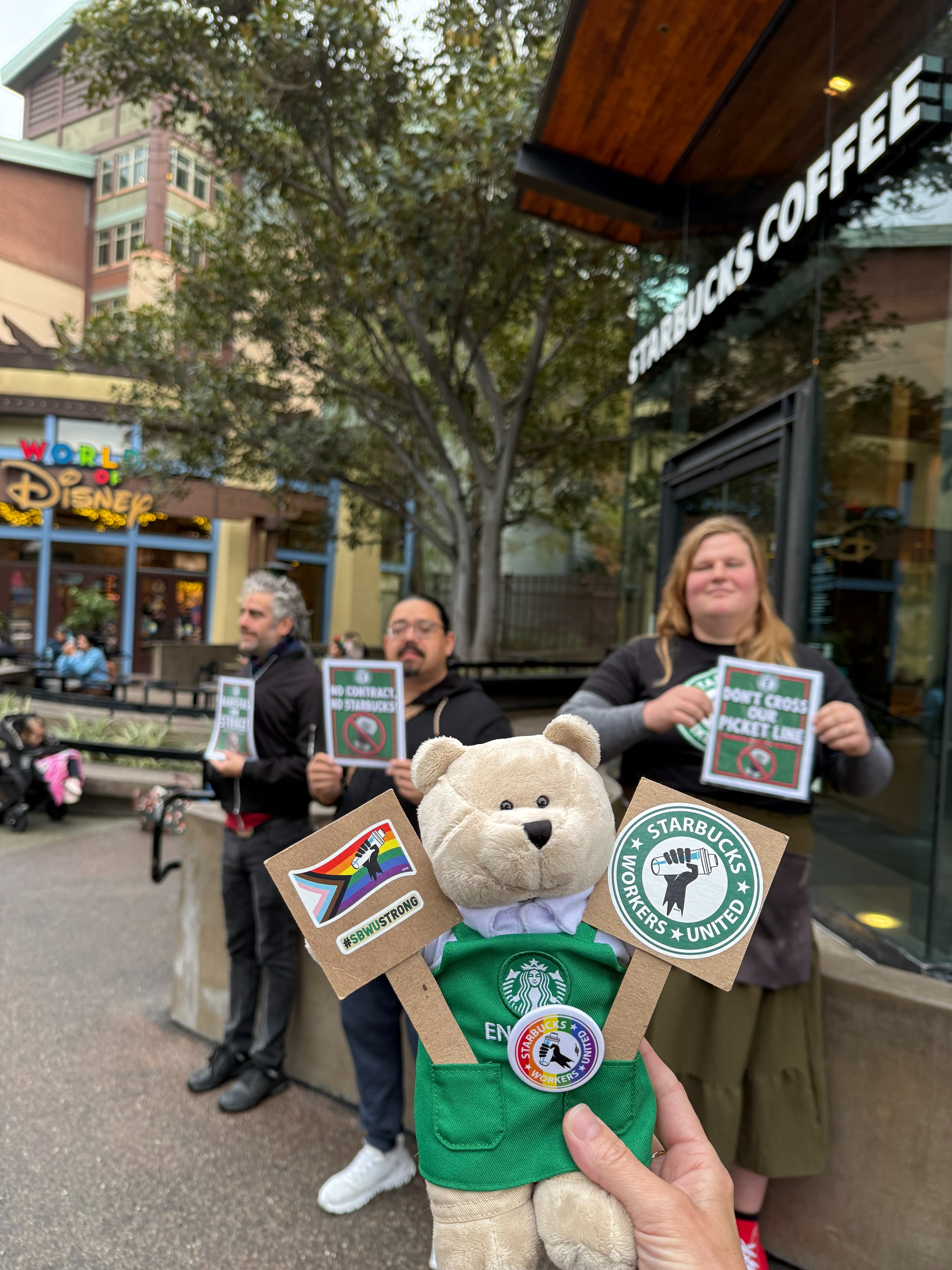 We are raising money for the actively striking Downtown Disney Starbucks Baristas who are currently on an extended strike demanding better wages, guaranteed hours, and an end to unfair labor practices. Please take a break from buying Starbucks until we get our contract and consider donating to support your hard working Downtown Disney Starbucks Baristas actively participating in the strike. We will be using this money to buy groceries for our strike kitchen, gift cards for strikers in need, and other expenses that come up while we are on strike. Thank you for your support.