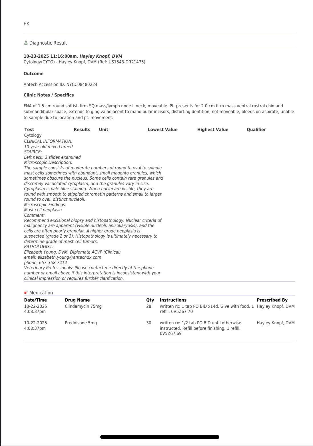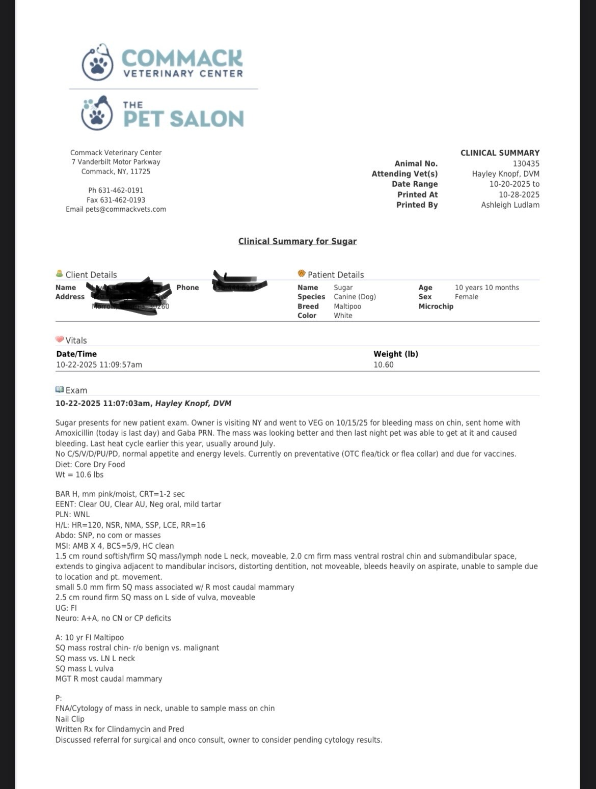 Sugar was bleeding from the chin. Apparently she was scratching it. This revealed a small mass on her chin.