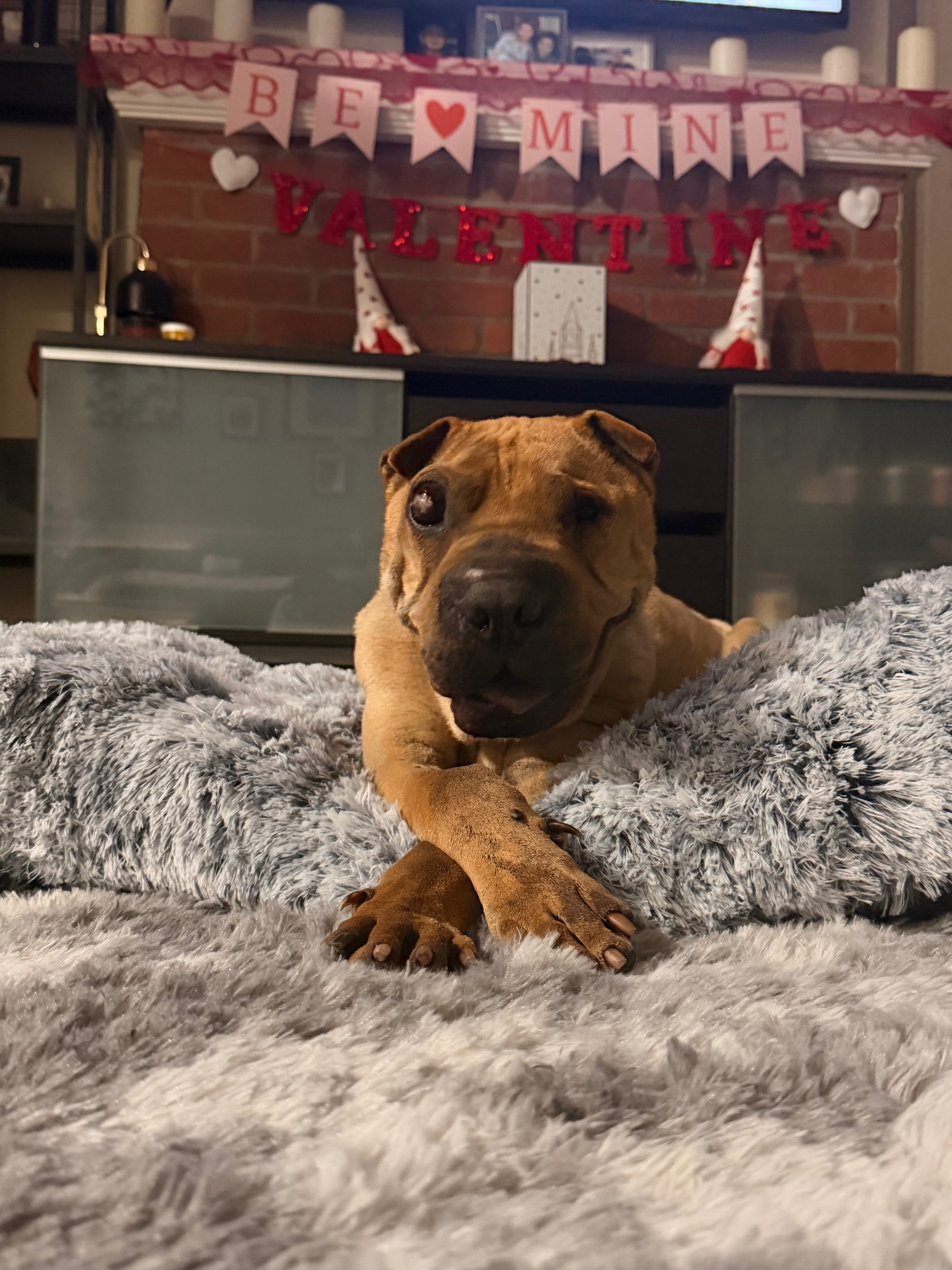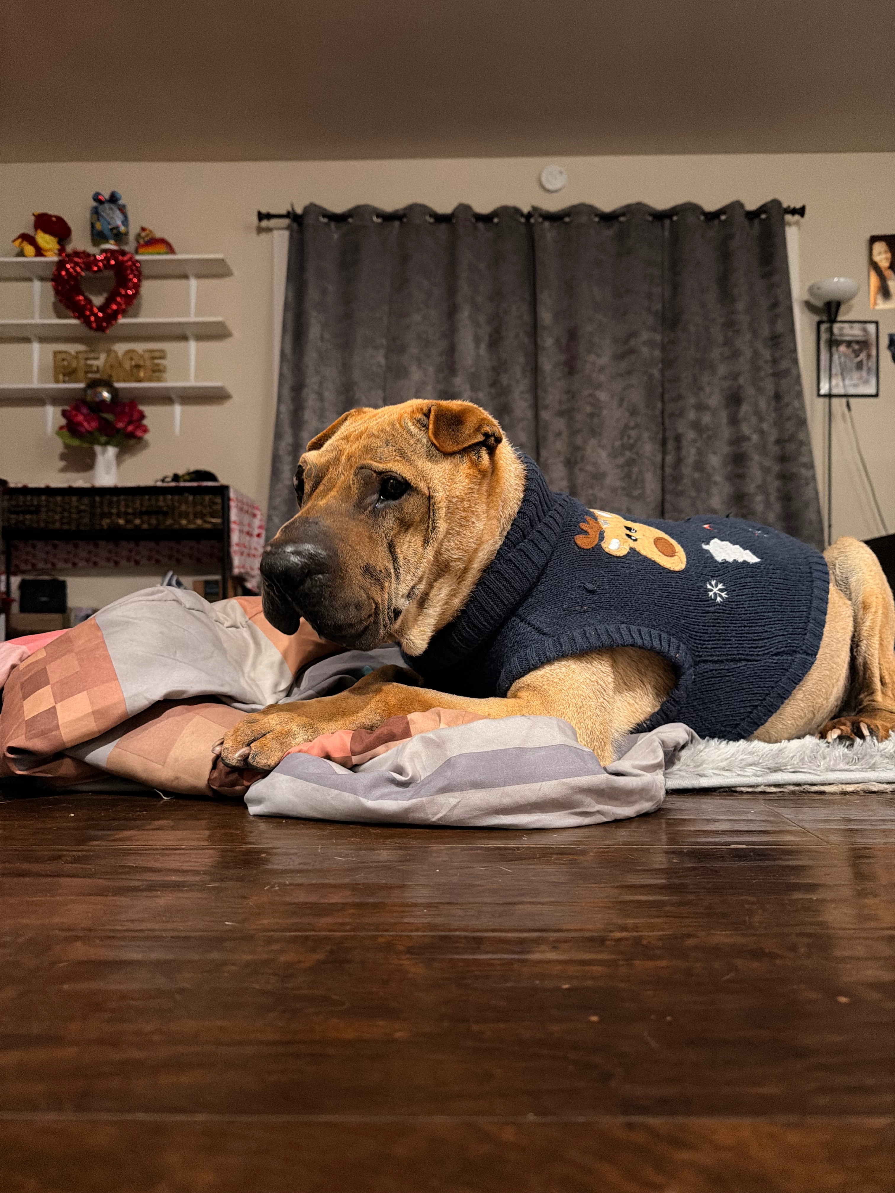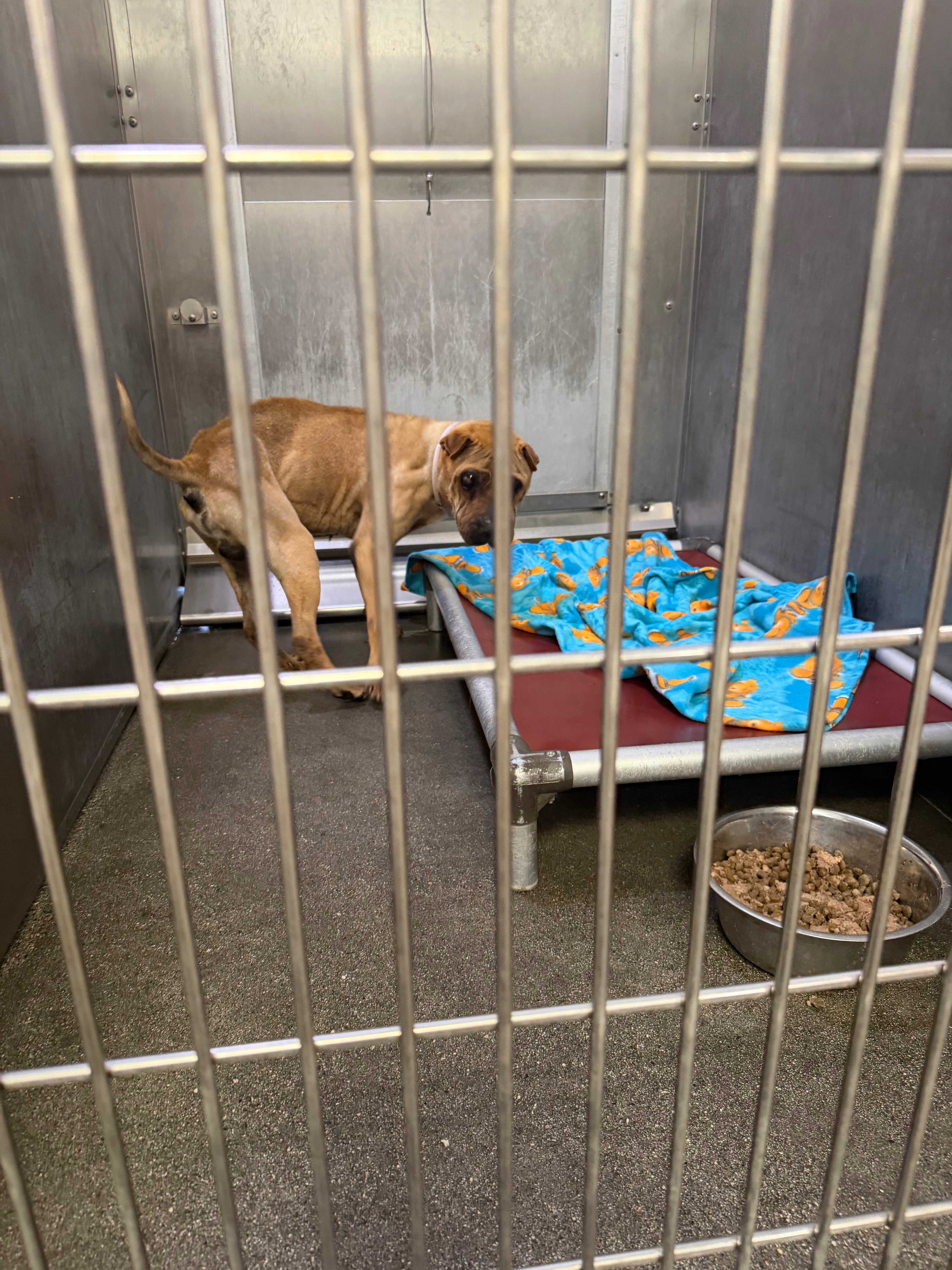 Sully is an 11-year-old Shar Pei who has endured more hardship than any dog should ever face. When I found him at the shelter, he was skin and bones, his back pressed against the cage, and he had completely given up on life. He had been returned to the shelter three times, and his medical issues were overwhelming: blindness in both eyes, an enlarged eye from glaucoma, hearing loss, a persistent respiratory cough, and symptoms that point to Cushing's disease, which is common in his breed. Despite all of this, I knew I had to do my best to save him and show him the love he deserves.