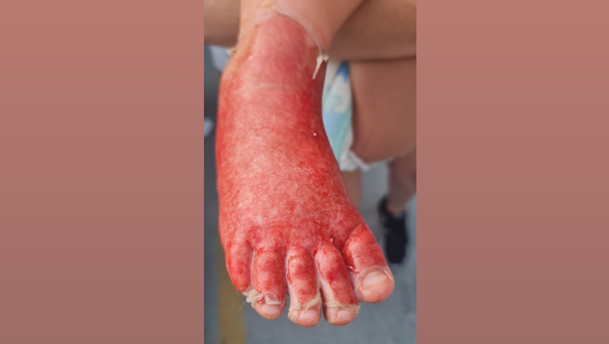 Arriya experienced severe injuries and was transported to a Toronto hospital this morning with significant burns on her rear end, back, thigh, calf, and the most severe being her foot.